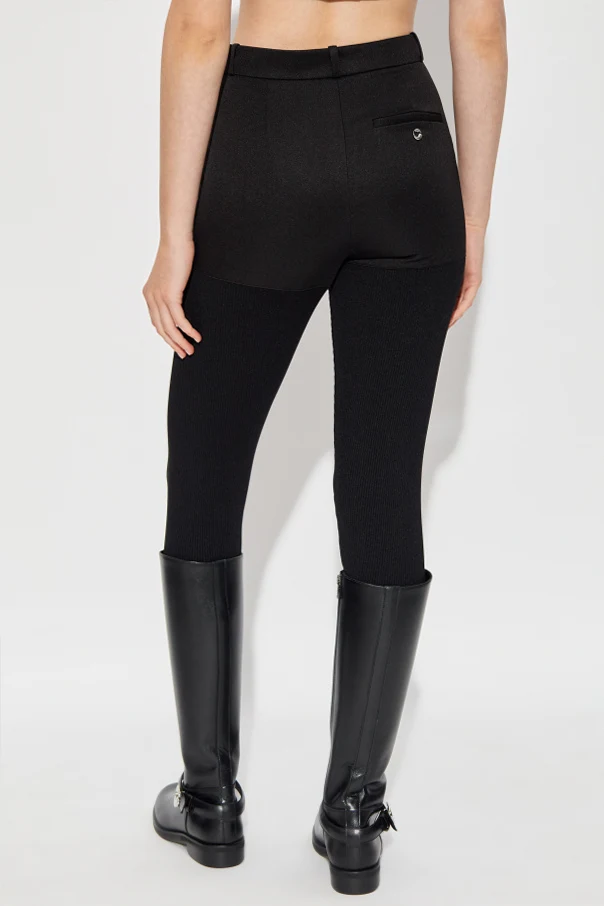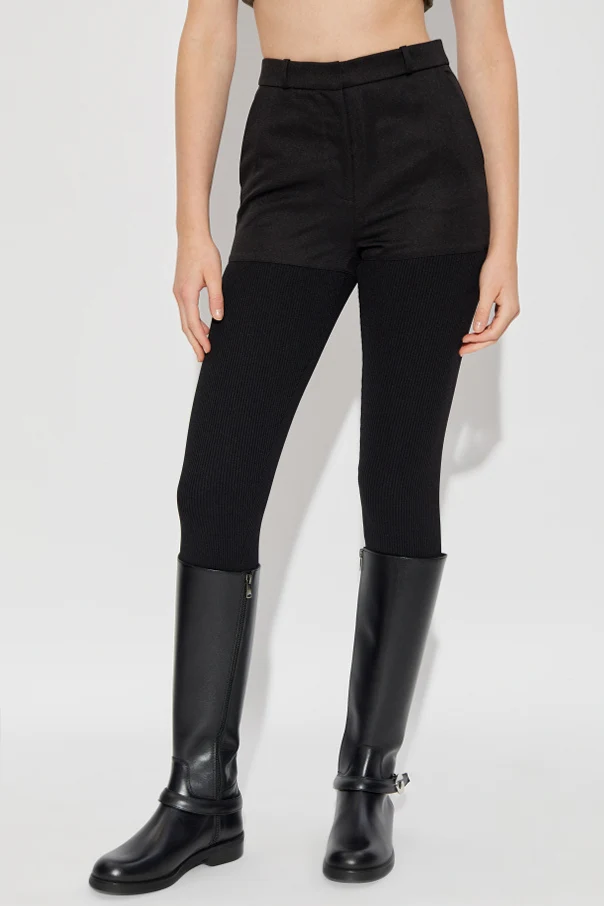 Hosen mit elastischem Steg von Coperni verkörpern die Synthese aus zeitgenössischem Minimalismus und subtiler Innovation. Ihr taillierter, hoch geschnittener Schnitt betont harmonisch die Silhouette und bietet sowohl Komfort als auch eine raffinierte Ästhetik. Der Einsatz von glattem Stoff im oberen Bereich und gerippter Struktur am unteren Teil der Beine erzeugt einen sinnlichen Kontrast der Texturen und bringt das Design einer kühnen Vision eines dynamischen Lebensstils näher.