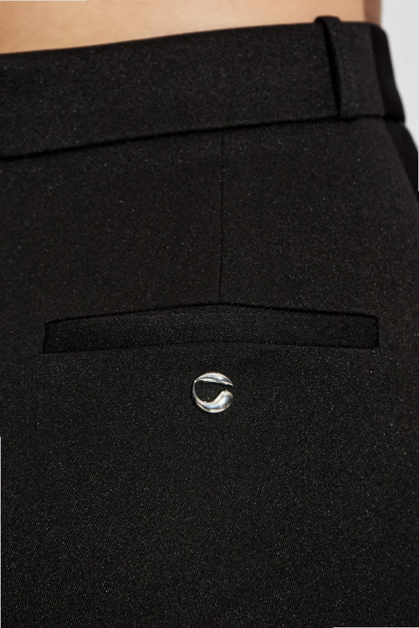 Das schwarze, einheitliche Farbschema verleiht der Hose einen zeitlosen, universellen Charakter, während der elastische Steg unter dem Fuß (stirrup) ihre Einzigartigkeit und Funktionalität unterstreicht. Die von architektonischen Formen inspirierte Linienführung und die Liebe zum Detail, die für die Pariser Marke Coperni typisch sind, machen dieses Modell zu einer perfekten Verkörperung exklusiver, moderner Mode.