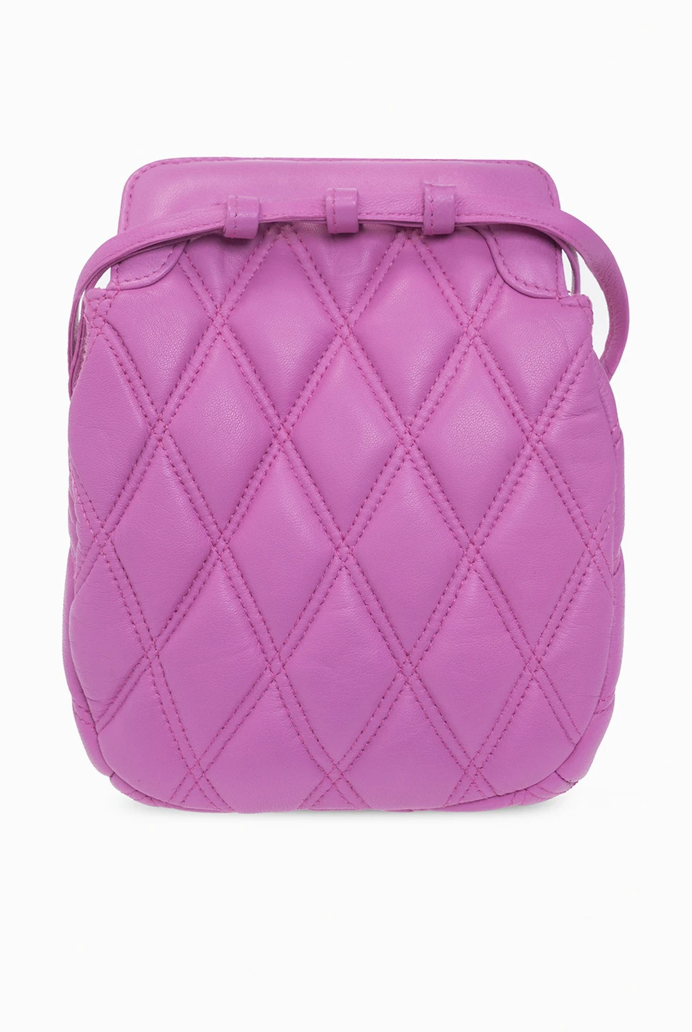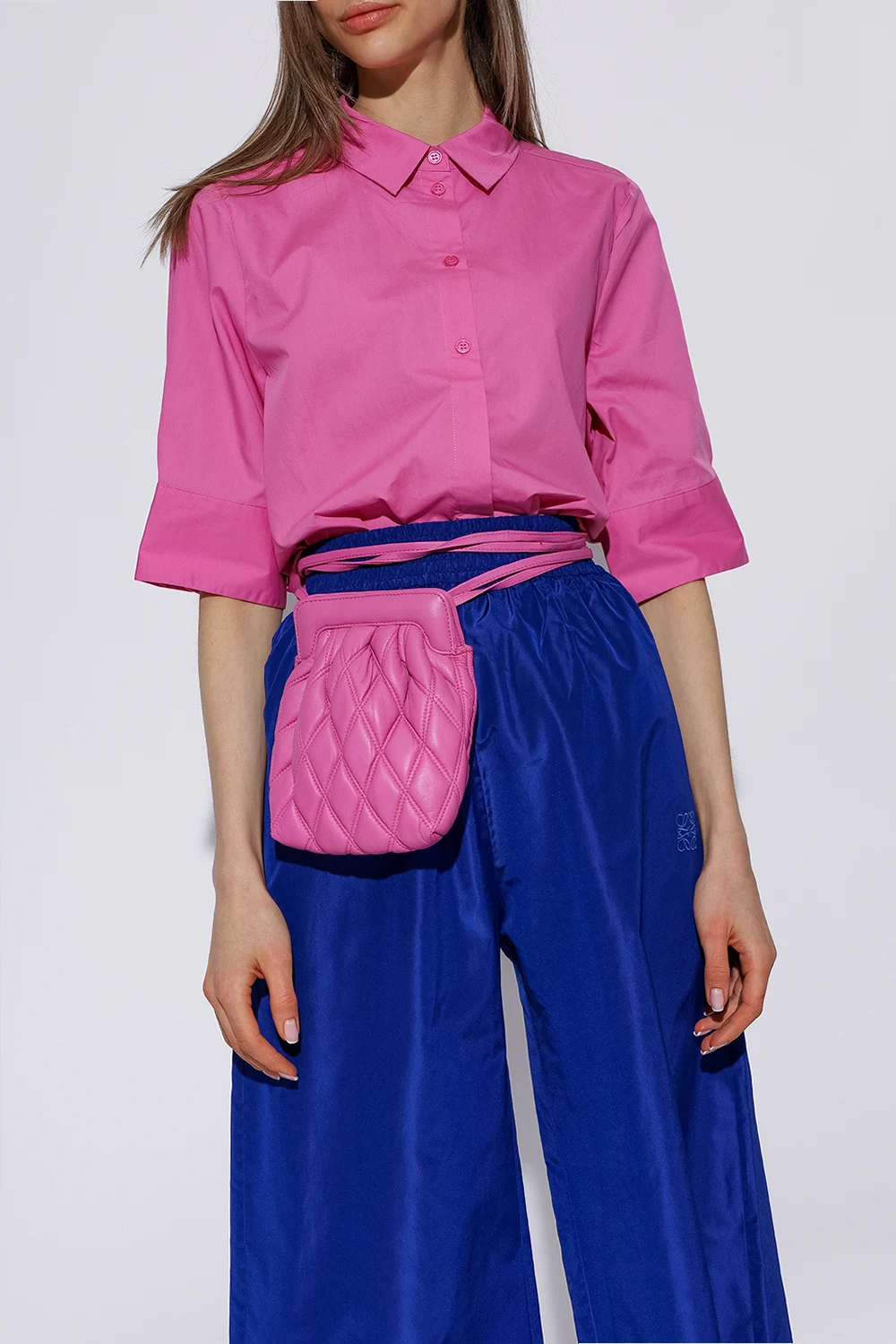 Pink ‘SunneyGZ’ quilted belt bag from Gestuz. Made of lamb leather with the Leather Working Group certificate, this model features a magnetic closure, drawstrings on the sides and one internal compartment with one zip pocket.