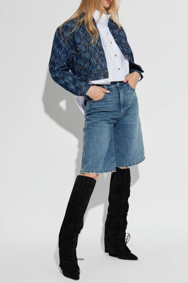 Das gesamte Modell ist aus hochwertigem, edlem Denim in einem tiefen Marineblau gefertigt, der sich durch außergewöhnliche Haltbarkeit und eine ausdrucksstarke Textur auszeichnet. Die Jacke wird durch das wiederkehrende Monogramm des Designers veredelt, das mit unvergleichlicher Präzision aufgebracht wurde, während fein kontrastierende, hellere Nähte dem Gesamteindruck eine harmonische Note verleihen.