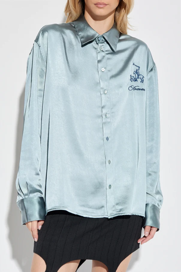 Das Logo-Hemd der Marke AVAVAV verkörpert die Essenz eines raffinierten Stils – mit seinem sorgfältig designten, oversized Schnitt, dem breiten Kragen und markanten Manschetten strahlt es lässige Eleganz aus. Das unbestreitbare Highlight dieses Modells ist der subtile Glanz des satinartigen Materials in Blau , das das Licht sanft reflektiert und jede Bewegung zu einem echten Blickfang werden lässt.