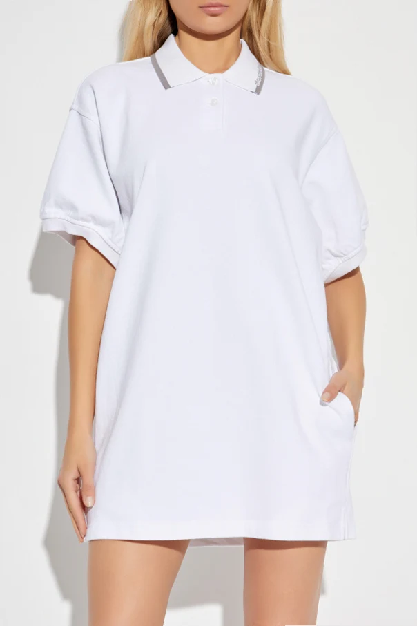 Weißes Polo-Kleid aus der exklusiven Kollektion von Alexander Wang ist eine raffinierte Wahl für Frauen, die dezenten Luxus schätzen. Ihr gerader, oversized Mini-Schnitt garantiert Bewegungsfreiheit und beeindruckt zugleich durch eine leicht maskuline Note, die für das Schaffen des Designers charakteristisch ist.