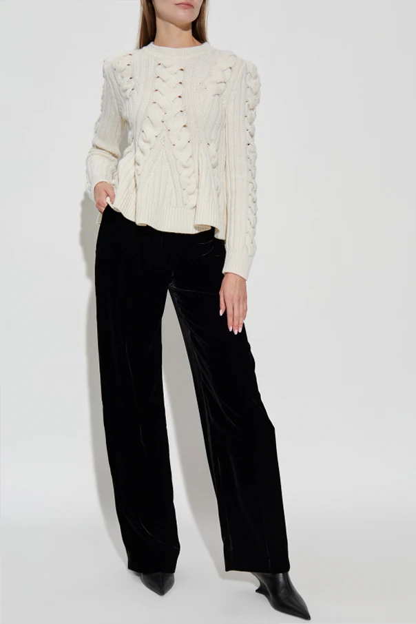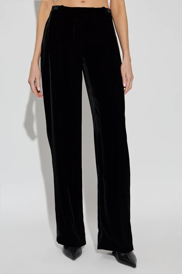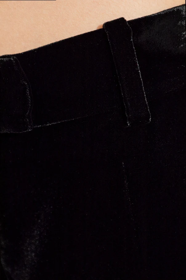 Samt-Hose mit weitem Bein von Alexander McQueen ist die Quintessenz zeitgenössischer Eleganz in schwarz . Der hohe Bund betont harmonisch die Taillenlinie, während der Palazzo-Schnitt mit weit geschnittenen Beinen der Silhouette Leichtigkeit und Raffinesse verleiht. Gefertigt aus edlem Samtstoff mit leicht schimmernder und seidig-glatter Oberfläche, bietet diese Hose ein einzigartiges haptisches und visuelles Erlebnis.
