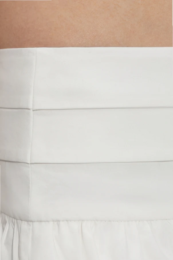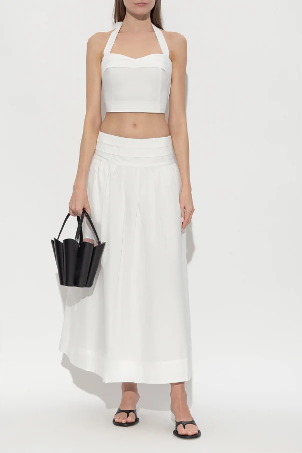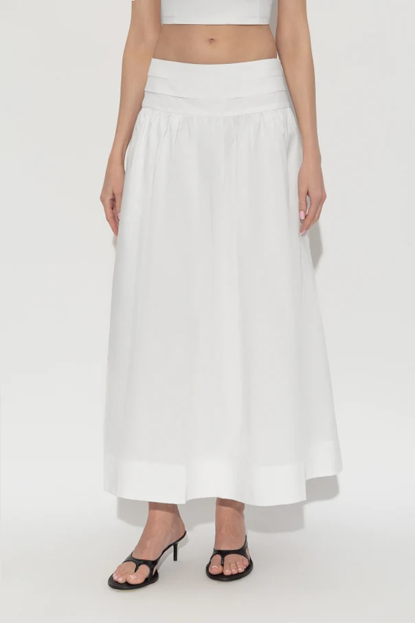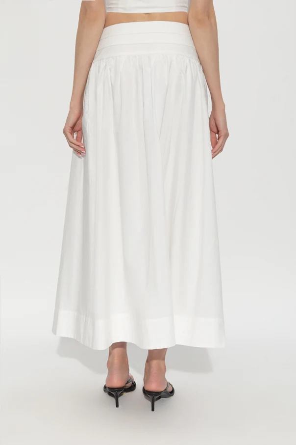 Der „Rue“ Rock ist die Definition moderner Eleganz – er richtet sich an Kennerinnen des raffinierten Stils, die Wert auf Subtilität und handwerkliche Perfektion legen. Der glänzende, makellos weiße Stoff bildet eine harmonische Einheit mit dem leicht ausgestellten Maxi-Schnitt, der bis zum Knöchel reicht. Das besondere Merkmal dieses Modells ist der breite, mehrschichtige Bund mit zarten, horizontalen Absteppungen, der die Taille wirkungsvoll betont und der Silhouette außergewöhnliche Leichtigkeit verleiht. Der feine, glatte Stoff begeistert durch seine Weichheit und seinen dezenten Glanz und sorgt für hohen Tragekomfort sowie einen makellosen Auftritt. Der minimalistische, einfarbige Charakter dieses Produkts macht ihn zur perfekten Wahl sowohl für klassische als auch für avantgardistische Accessoires.
