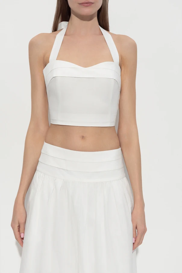 Top „Rue” der Marke Posse begeistert durch raffinierte Schlichtheit und meisterhafte Verarbeitung. Seine kurze, figurbetonte Crop-Form setzt die Silhouette perfekt in Szene und hebt feminine Vorzüge hervor. Das weiße Finish verleiht dem Gesamtbild Frische und zeitlose Eleganz und unterstreicht die edle Komposition.