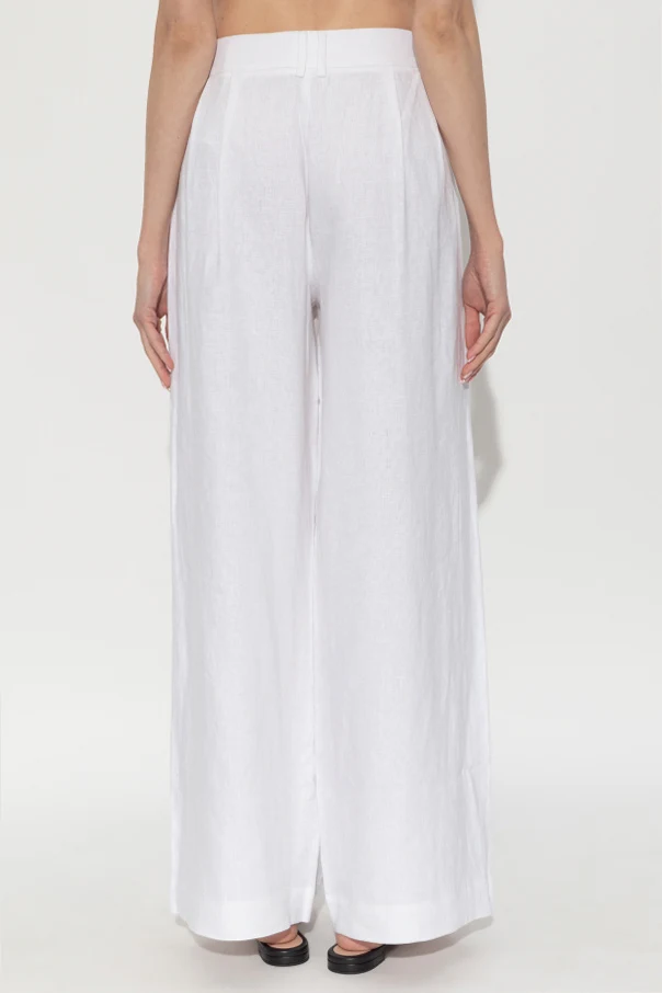 Parker”-Hose der Marke Posse ist ein Synonym für subtile Eleganz und makellosen Stil im Alltag. Die ausgewählte weiße Farbe unterstreicht die Frische der Linie sowie den zeitlosen Charakter dieses Modells. Die weiten, geraden Beine fallen sanft über das Schuhwerk und erzeugen einen originellen, modernen Effekt, während die hohe Taille mit betontem Bund und Gürtelschlaufen die Silhouette perfekt modelliert.