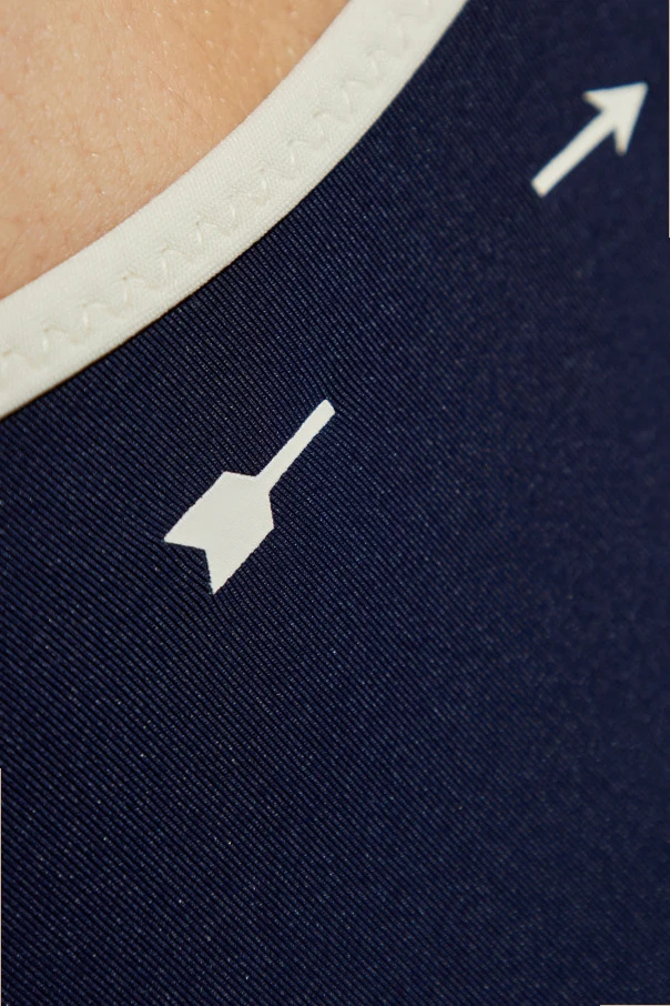 Das Modell besticht durch subtile Details – eine helle Paspelierung setzt einen sinnlichen Kontrast zum tiefen Dunkelblau, während minimalistische, weiße Pfeile am Rücken eine einzigartige Designer-Signatur hinzufügen. Frei von überflüssigen Verzierungen begeistert dieser Badeanzug durch edle Schlichtheit und sorgfältige Verarbeitung.