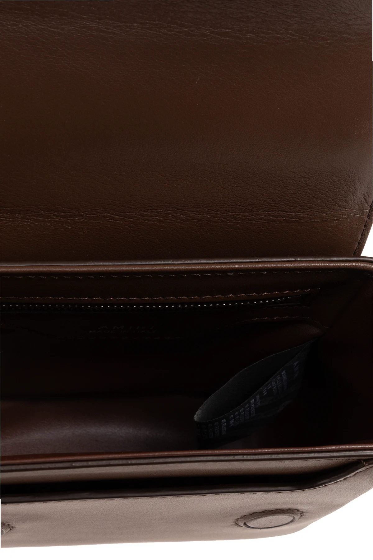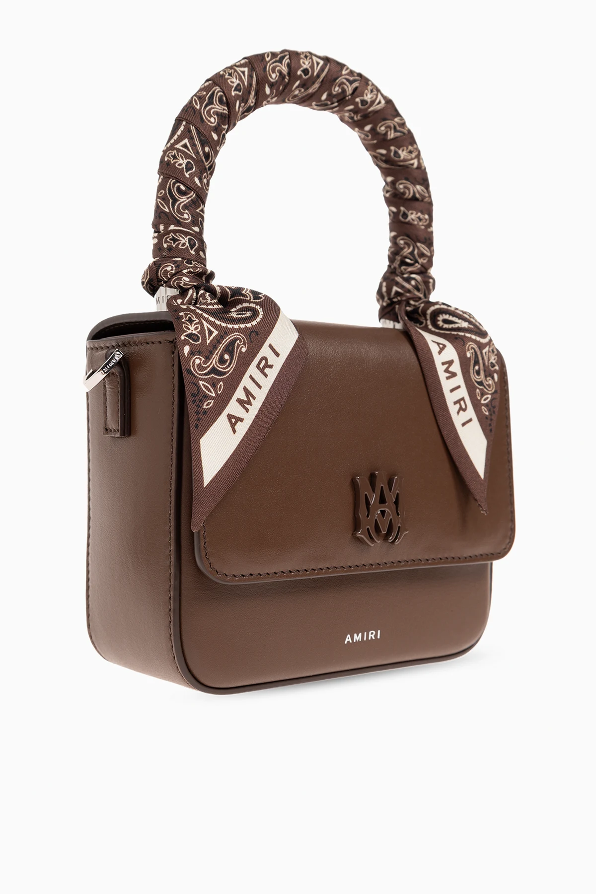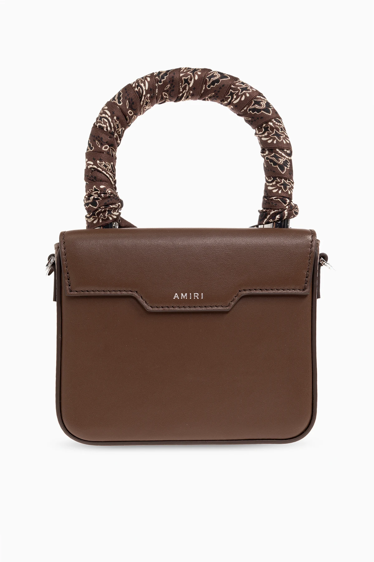 Brown shoulder bag from Amiri. Made of leather, this model features a magnetic snap closure, logo detail, half-round handle, adjustable shoulder strap, silver-tone metal hardware and one internal compartment with one slip pocket and one zip pocket.