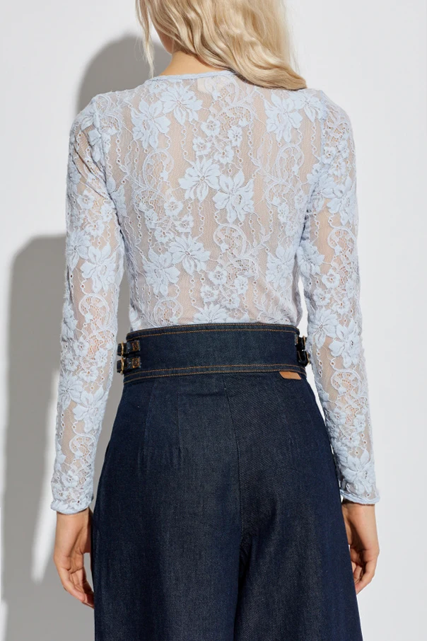 Spitzen-Body Lace ist ein zeitloser Vorschlag des Modehauses Zimmermann, der Finesse und subtile Sinnlichkeit ausstrahlt. Gefertigt aus transparenter, äußerst zarter Spitze, verführt es mit seinem hellblauen Farbton und einem markanten, floralen Pflanzenmotiv. Das edle Material vereint auf harmonische Weise die Feinheit des Musters mit höchstem Tragekomfort, setzt den Hautton dezent in Szene und betont die Silhouette.