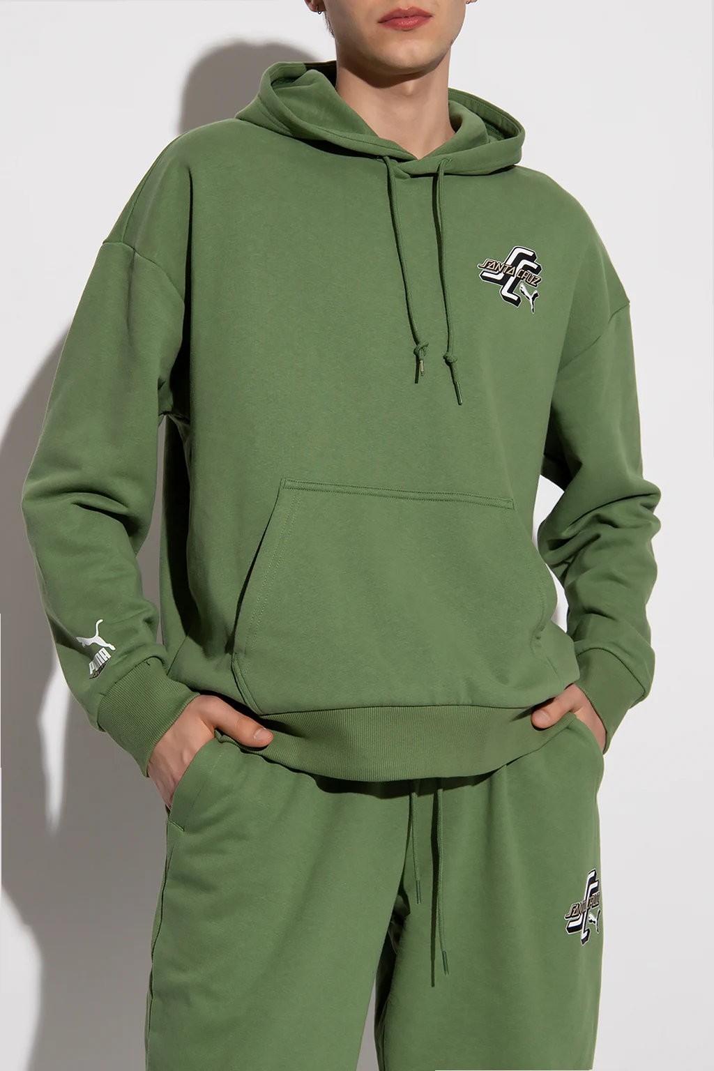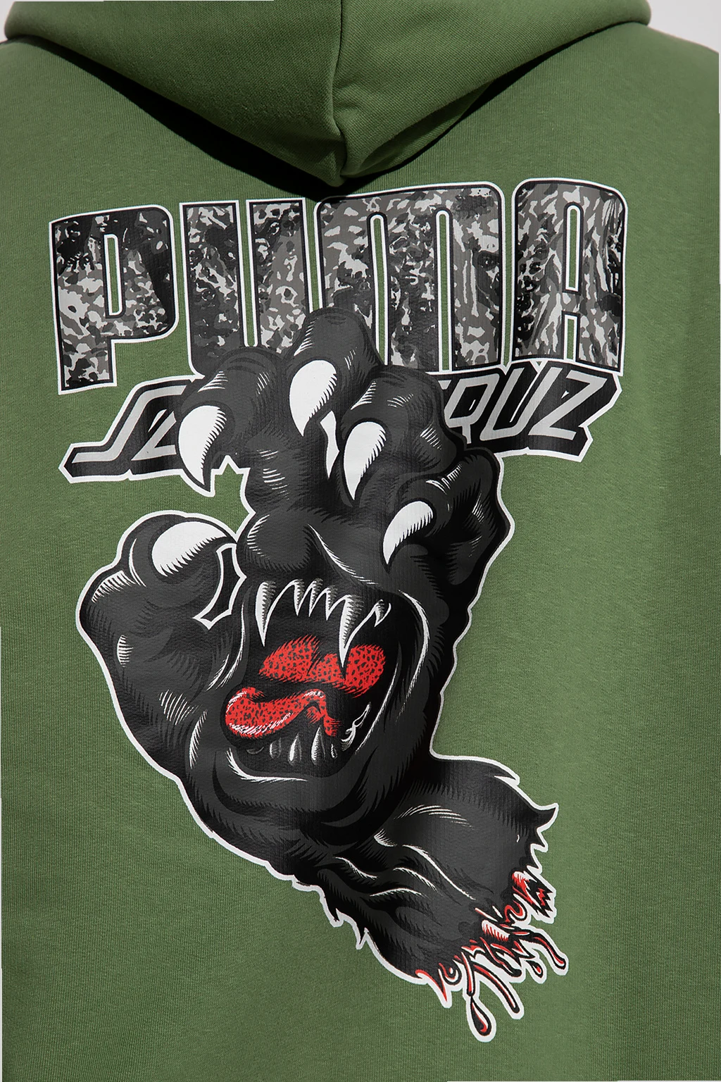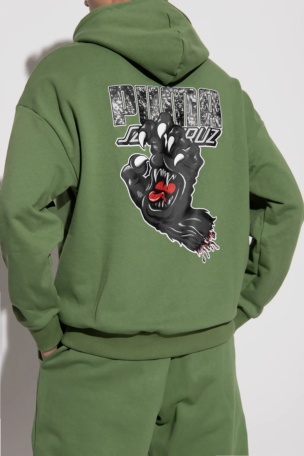 Green hoodie from Puma x Santa Cruz. Made of cotton, this garment features a drawstring hood, printed logo pattern, two front pockets and ribbed trims.