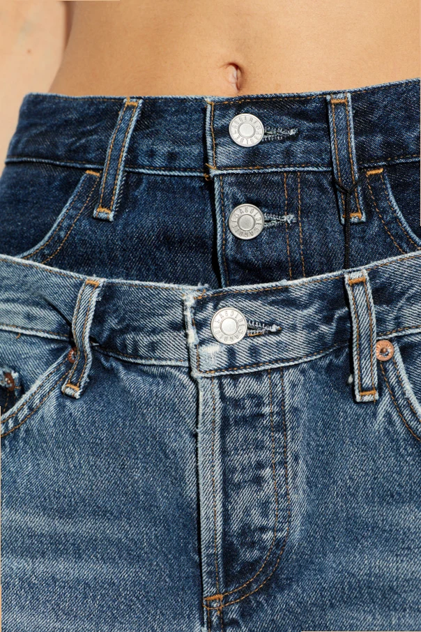 Der dominante blaue Farbton des Materials wurde durch einen künstlerischen Wasch-Effekt und dezente Abnutzungen veredelt, was dem Ganzen einen zeitlosen Charakter verleiht. Besonderes Augenmerk verdient der doppelte Bund : Das dunklere obere Paneel kontrastiert deutlich mit dem helleren und erzeugt so einen einzigartigen „Double-Waist“-Effekt. Sorgfältig ausgearbeitete, robuste Nähte unterstreichen die kompromisslose Qualität und Langlebigkeit des Produkts.