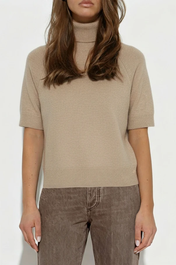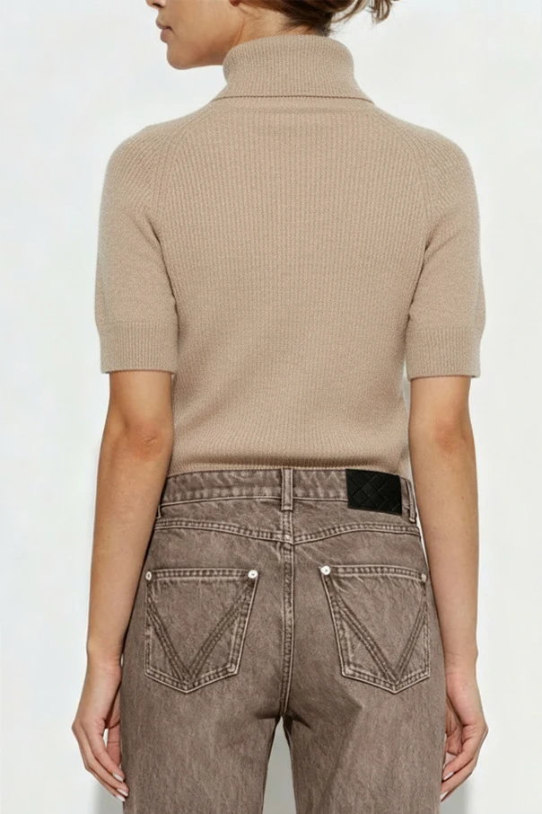 Kaschmir-Turtleneck der Marke Anine Bing strahlt unvergleichliche Subtilität und Raffinesse aus. Dieser außergewöhnliche Pullover in einem beigen Farbton besticht durch seinen klassischen, geradlinigen Schnitt mit leicht lockerer Passform und kurzen T-Shirt-Ärmeln. Der hohe, breite Turtleneck mit Rippbündchen verlängert optisch den Hals und verleiht der Silhouette Leichtigkeit und Eleganz.