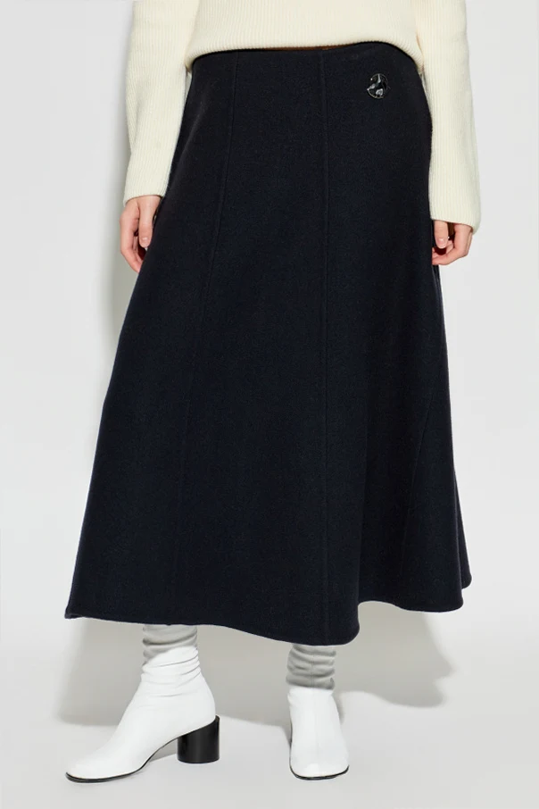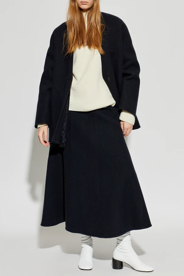 Der Moncler + Jil Sander Rock verkörpert minimalistische Eleganz und meisterhafte Handwerkskunst. Die ausgestellte A-Linien-Form und die Midi-Länge schaffen eine harmonische und äußerst raffinierte Silhouette. Die glatte, matte Textur unterstreicht den luxuriösen Charakter, der durch die edle Kombination aus Wolle und Leder erreicht wird.