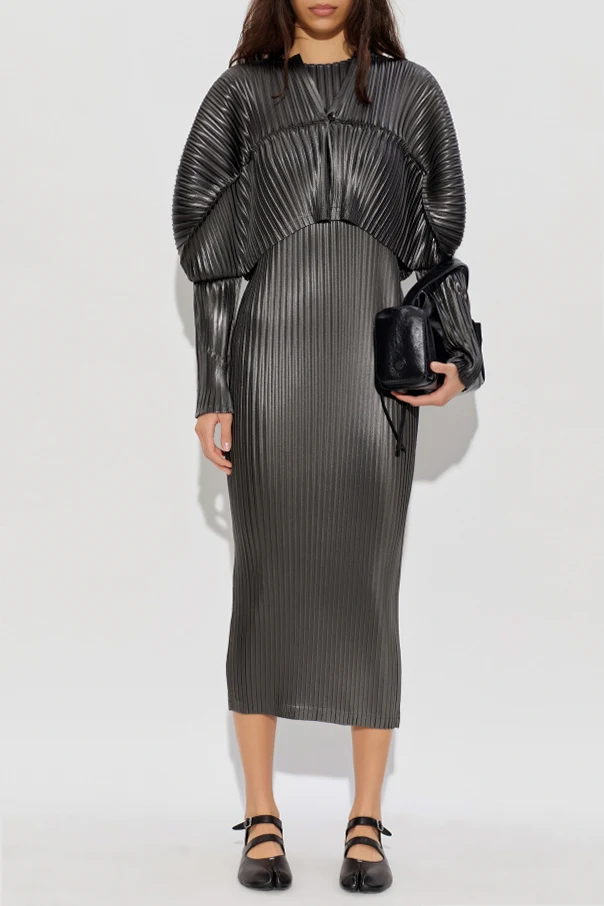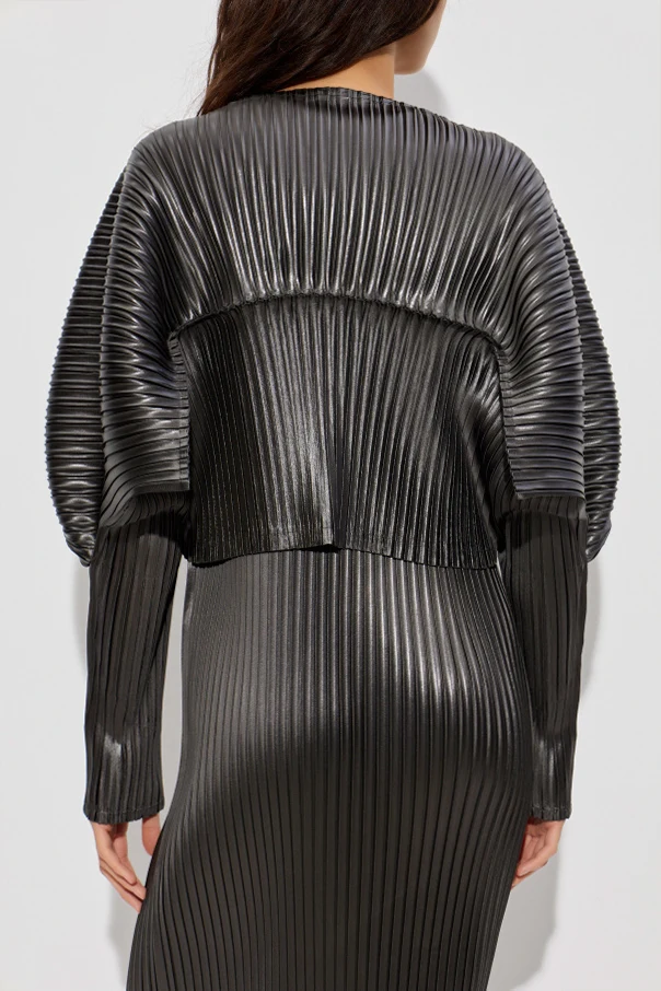 Plissierter Cardigan in verkürztem Schnitt ist die Verkörperung raffinierter Schlichtheit und japanischer Innovationskraft. Das Design von Issey Miyake begeistert mit einer skulpturalen Silhouette – Oversize mit perfekt geformten, ballonförmigen Ärmeln und einer Länge bis zur Taille.