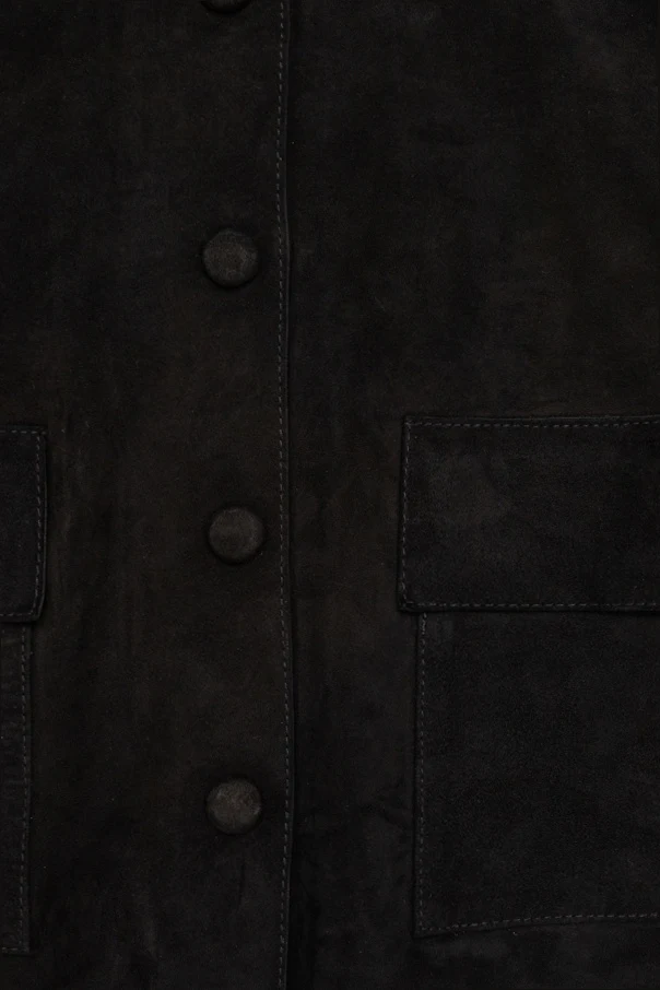 Die Jacke in der Farbe black zeichnet sich durch große, vorne aufgesetzte, rechteckige Taschen sowie exklusive mit dem gleichen Leder bezogene Knöpfe aus. Das Fehlen sichtbarer Markenkennzeichen verstärkt den Eindruck raffinierter Minimalistik und macht dieses Modell zu einem besonders vielseitigen Bestandteil der Garderobe jeder anspruchsvollen Modebegeisterten.