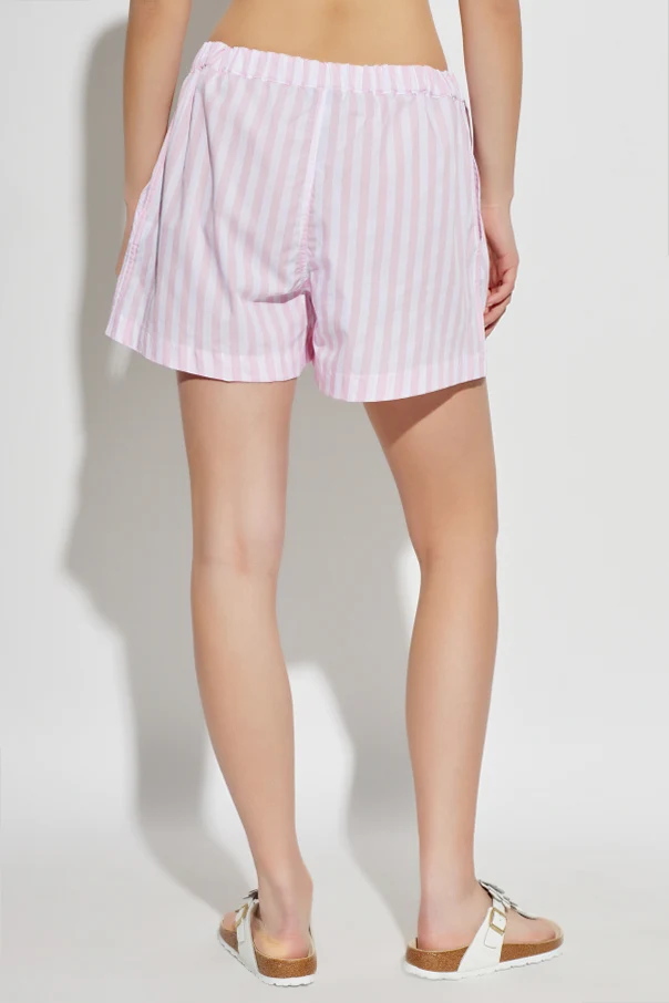 Shorts mit Streifenmuster der Marke Hunza G sind die Quintessenz sommerlicher Freiheit und raffinierter Stilistik. Der lockere, gerade Schnitt bis zur Mitte des Oberschenkels verbindet harmonisch Komfort mit zeitloser Eleganz. Die dominierenden vertikalen Streifen in rosafarbenen und weißen Tönen unterstreichen den originellen Charakter des Produkts perfekt.