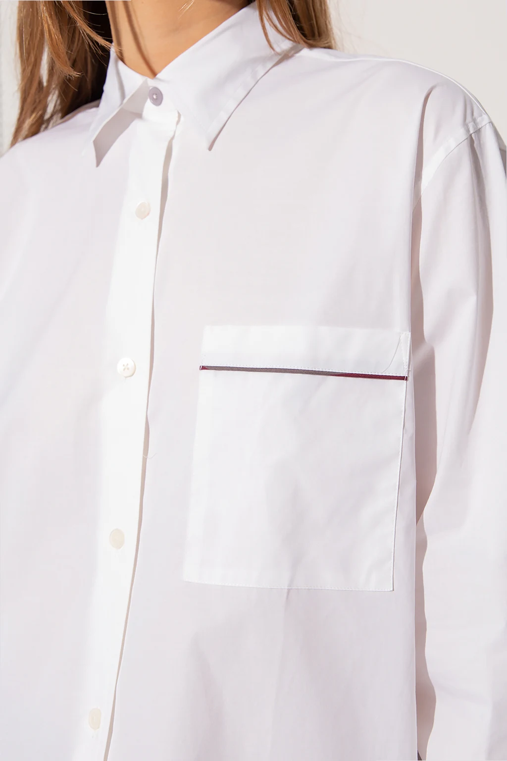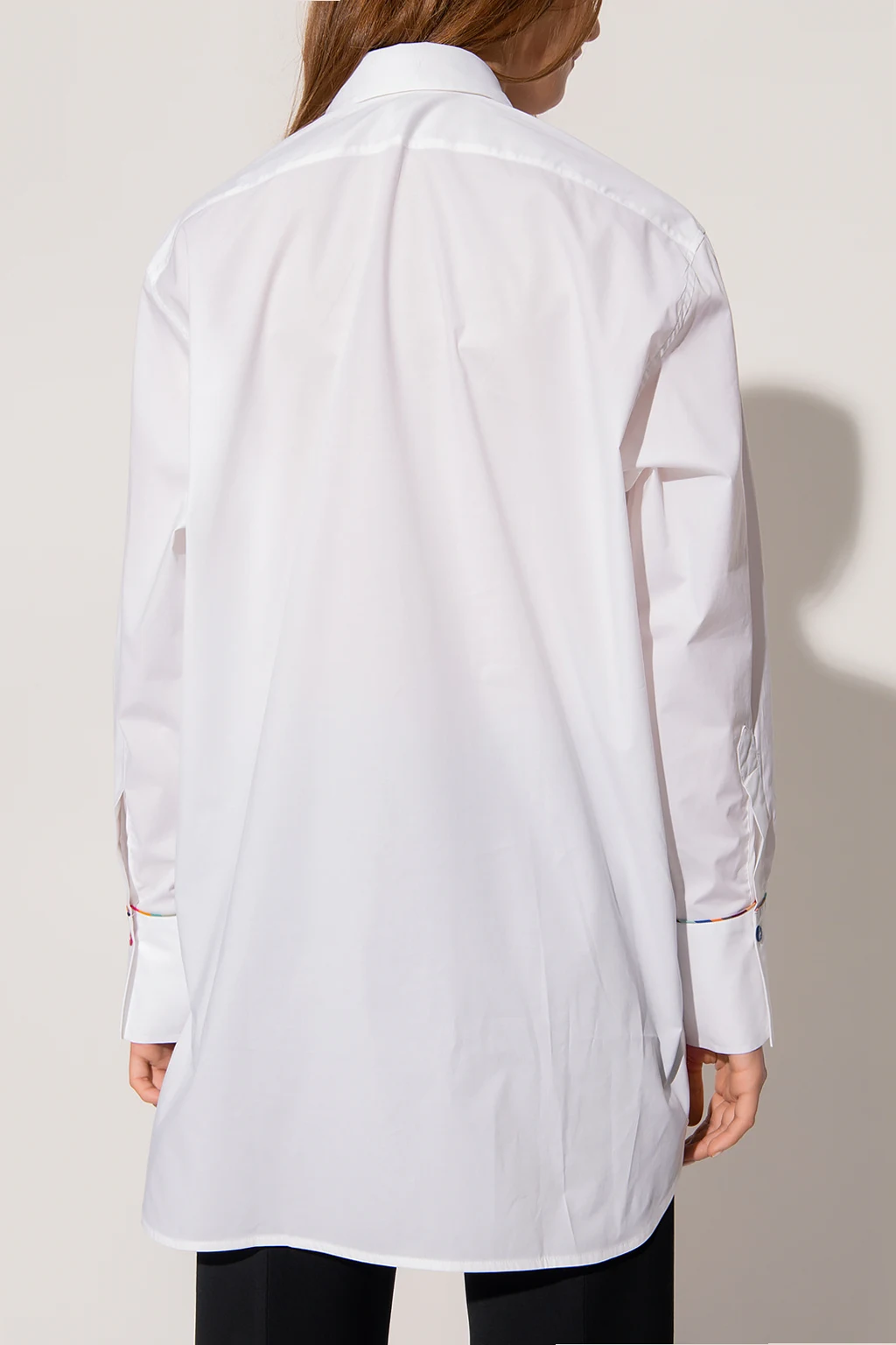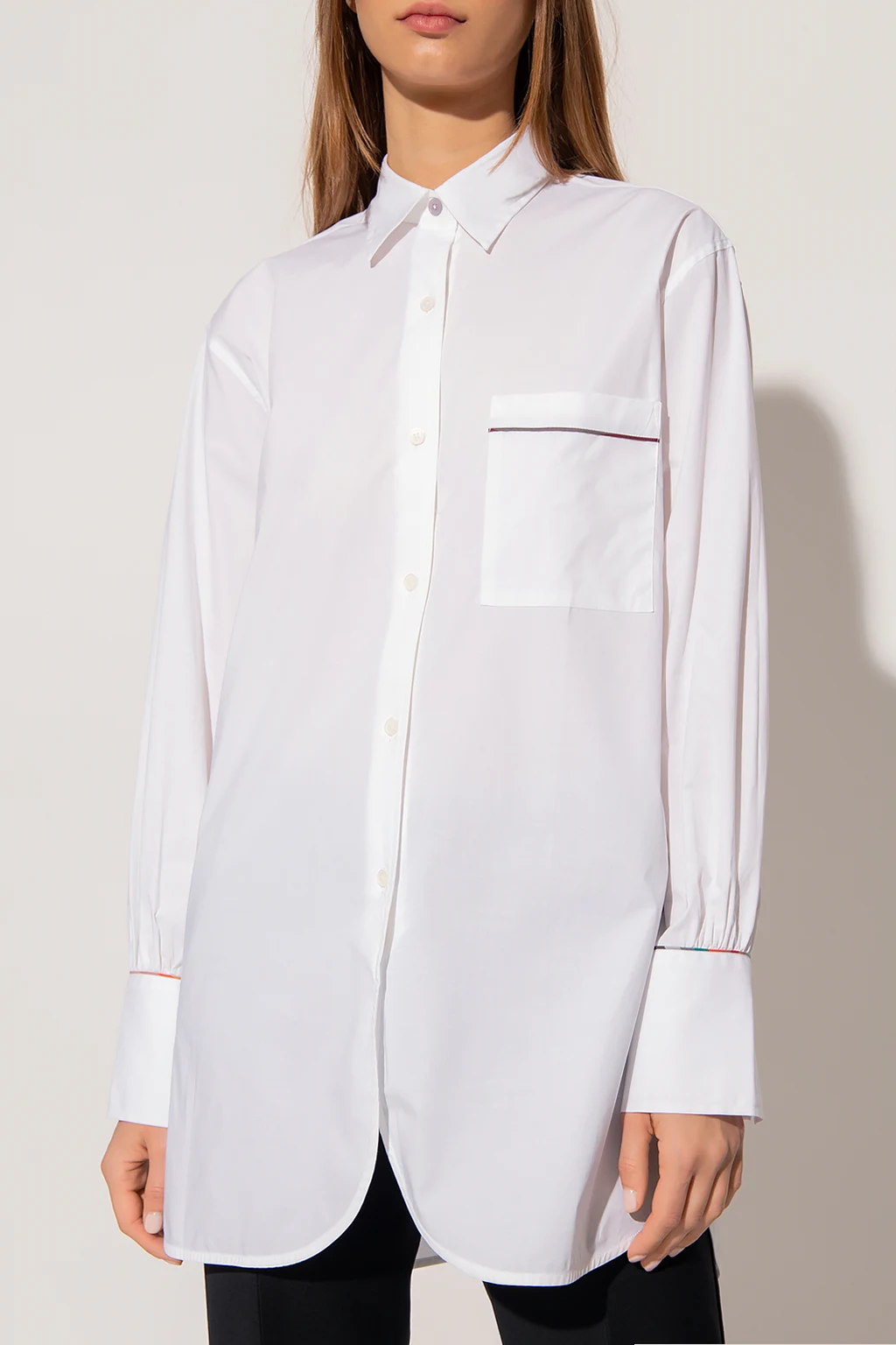 White shirt from PS Paul Smith. Made of cotton, this garment features button fastenings, multicolored inserts, front pocket and buttoned cuffs.