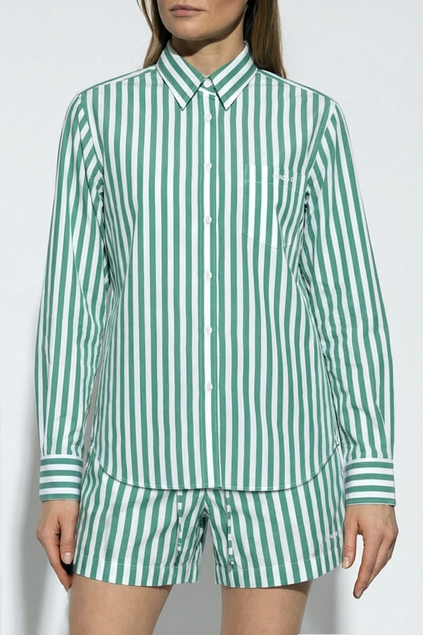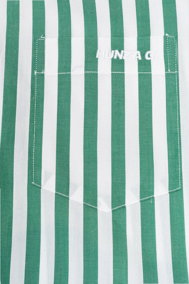 Das gestreifte Hemd der Marke Hunza G begeistert mit zeitloser Eleganz und vereint klassische Form mit ausdrucksstarker Ästhetik. Ihr zeitloser Schnitt in leicht lockerer Linienführung betont dezent die Silhouette und sorgt gleichzeitig für angenehme Bewegungsfreiheit. Die langen Ärmel mit Manschetten und der klassische Kragen bilden eine harmonische Einheit, während der abgerundete Saum dem Ganzen Leichtigkeit verleiht.