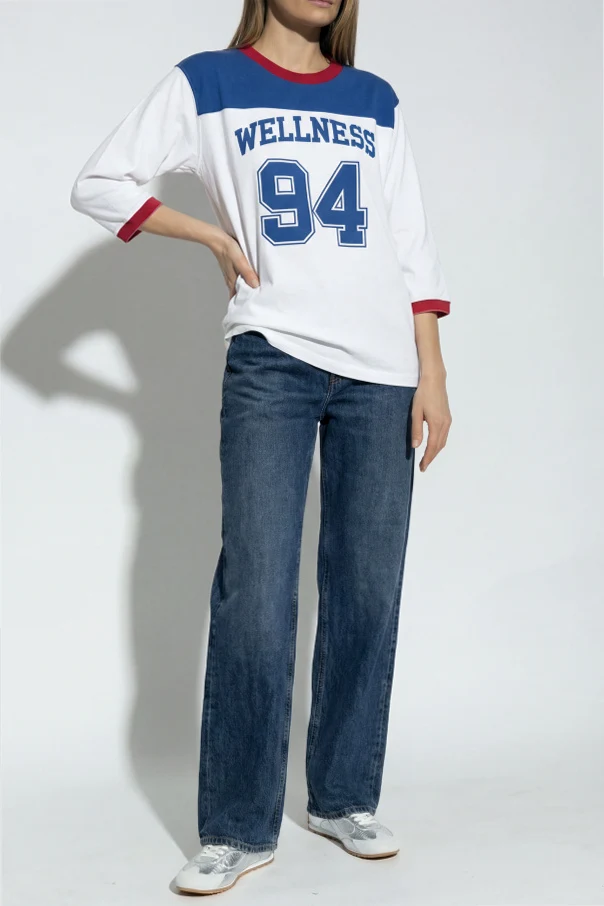 T-Shirt aus der Wellness 94 Kollektion von Sporty & Rich ist eine wahre Ode an die subtile Eleganz, inspiriert vom retro-sportlichen Geist. Dieses klassische, weiße T-Shirt begeistert durch seinen schlichten Schnitt und die zeitlose Form, die sanft und locker die Silhouette umspielt.