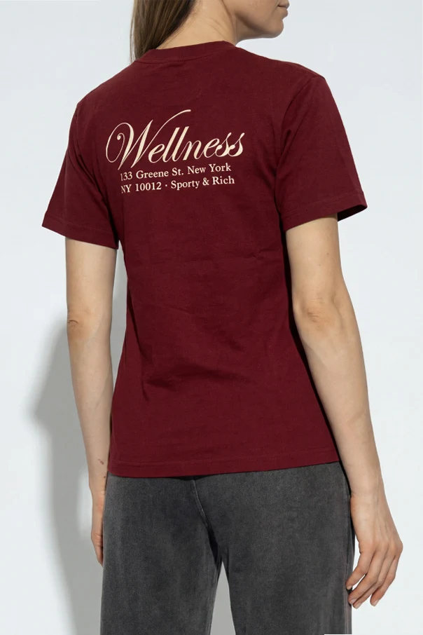 Ein subtiler Textprint „Wellness” sowie „Sporty & Rich” schmücken die linke Brust, während die Rückseite durch einen auffälligen Schriftzug und die Designeradresse hervorsticht – ein klares Zeichen für den exklusiven Ursprung des Produkts. Die leicht taillierte Passform mit Rundhalsausschnitt sorgt für ein komfortables und stilvolles Tragegefühl – sowohl im Alltag als auch zu besonderen Anlässen.