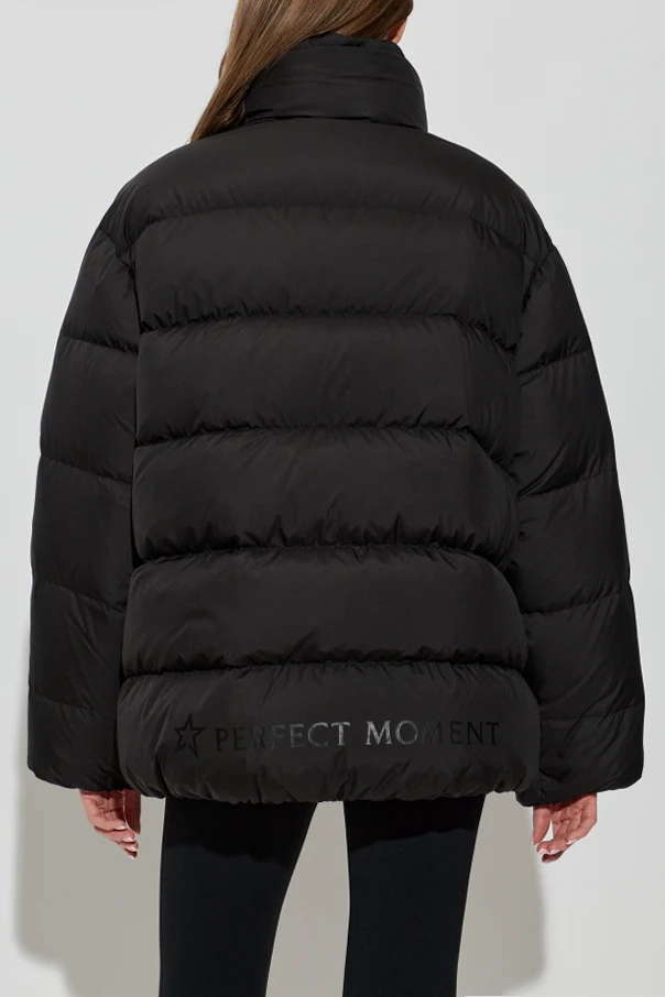Die Daunenjacke mit Stehkragen der Marke Perfect Moment verkörpert raffinierte Eleganz und zeitlosen Stil. Das atemberaubende Schwarz in Kombination mit einem matten Finish sowie die markanten, horizontalen Steppnähte der Daunenkammern verleihen der Silhouette eine charakteristische, luxuriöse Volumenwirkung.