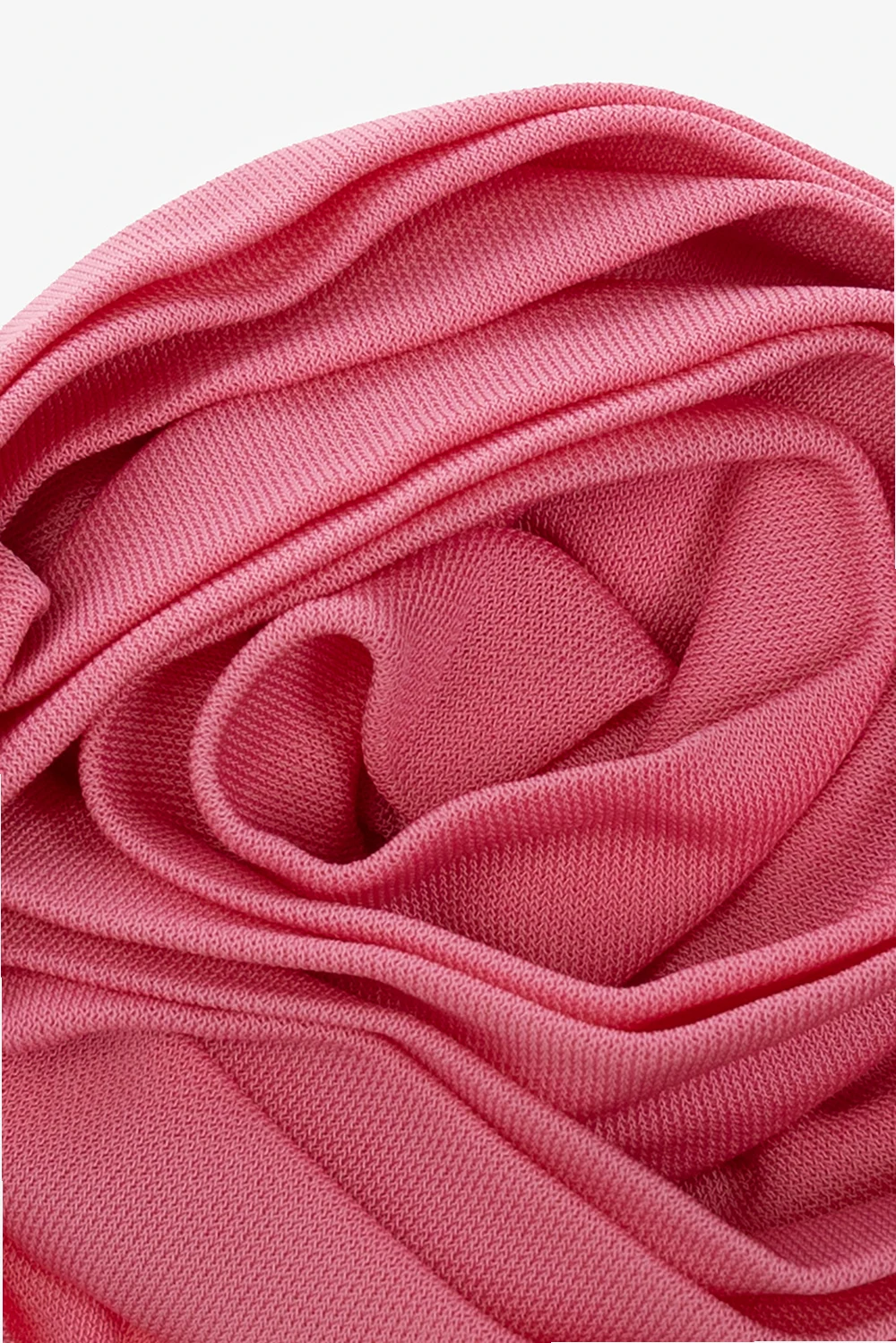 Flower-shaped brooch in pink from Blumarine. Made of fabric, this item features an antiqued gold-tone pin closure with an engraved logo at the back.