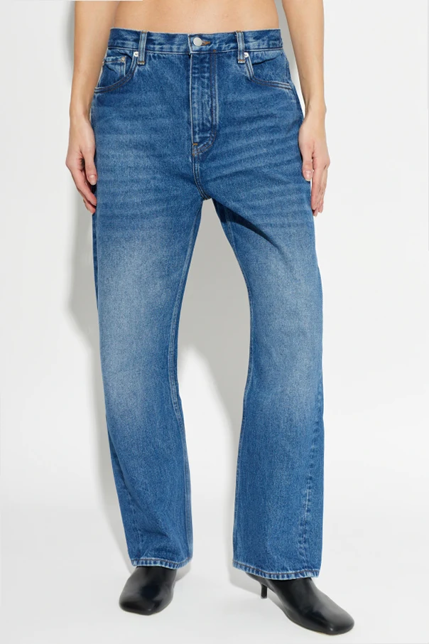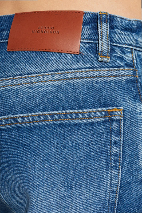 ‘Denjo’ Jeans von Studio Nicholson begeistern durch die kunstvolle Verbindung zeitloser Form und ausgewogener Eleganz. Gefertigt aus hochwertigem Baumwoll-Denim, zeichnen sie sich durch einen klassischen, regulären Schnitt mit leicht erhöhtem Bund sowie geraden, weiten Beinen aus. Die rohe, nicht elastische Struktur des Materials unterstreicht den traditionellen, edlen Charakter dieser Jeans.