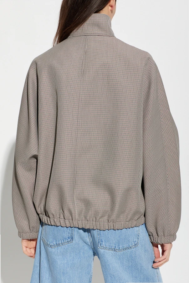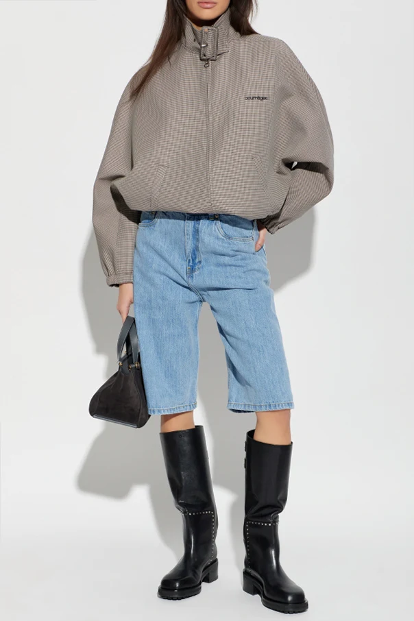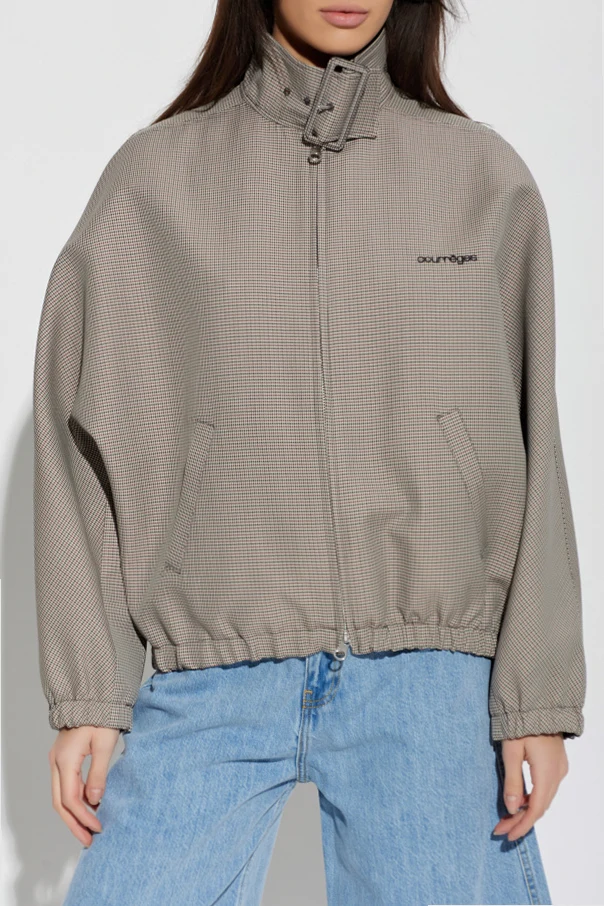 Jacke mit Hahnentrittmuster ist ein kunstvolles Angebot der Marke Courrèges, das zeitlose Klassik harmonisch mit moderner Form verbindet. Das Modell in einem dezenten, beigen Farbton wurde aus einem fein gewebten Stoff gefertigt, der an das subtile, raffinierte Hahnentrittmuster erinnert. Der lockere, leicht oversize geschnittene Stil mit leicht fallenden Schultern und elastischen Bündchen betont den täglichen Komfort und einen lässigen Charme.