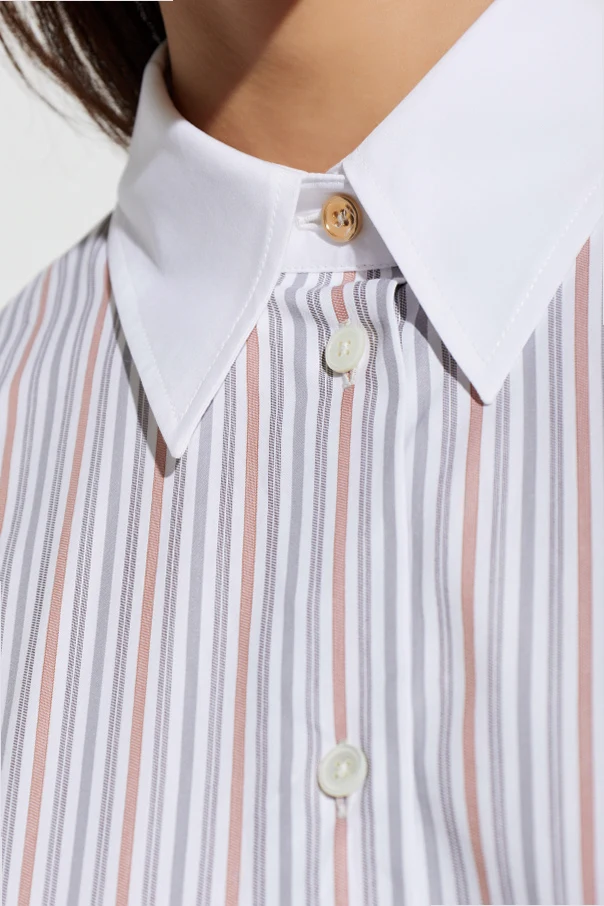 Oversize-Hemd mit dem Signature-Stil von Paul Smith ist die Quintessenz zeitloser Eleganz und raffinierter Stilistik. Der lockere, verlängerte Schnitt sowie die leicht überschnittene Schulterlinie unterstreichen subtil die Lässigkeit der modernen Frau und bieten gleichzeitig außergewöhnlichen Tragekomfort.