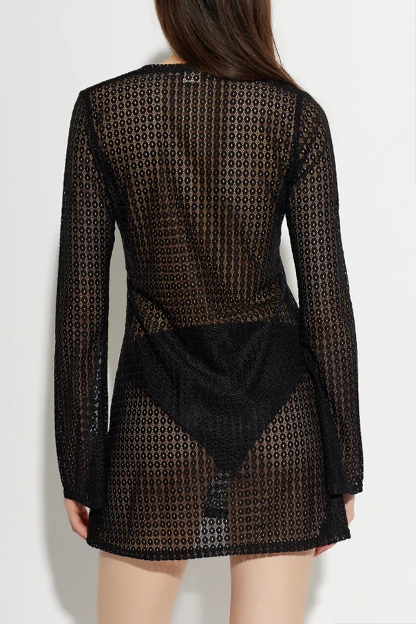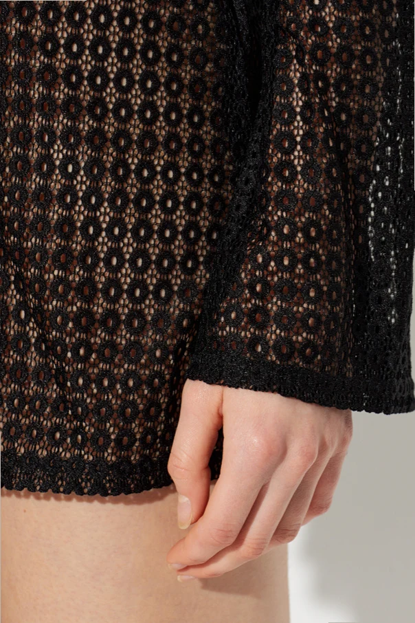 Das Kleid Krista von Paramidonna ist eine edle Wahl für sonnige Tage, die mit Subtilität und modernem Ausdruck Blicke auf sich zieht. Das dominante Schwarz , durchbrochen von einem leicht transparenten, ajourähnlichen Material mit regelmäßigem Muster aus kleinen Kreisen, verleiht dem Kleid Leichtigkeit und Eleganz. Der kurze Mini-Schnitt in Kombination mit den langen Ärmeln betont die Silhouette dezent und sorgt zugleich für Bewegungsfreiheit und Leichtigkeit.