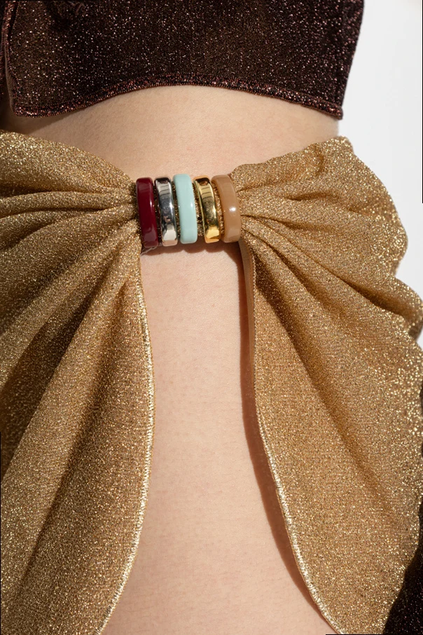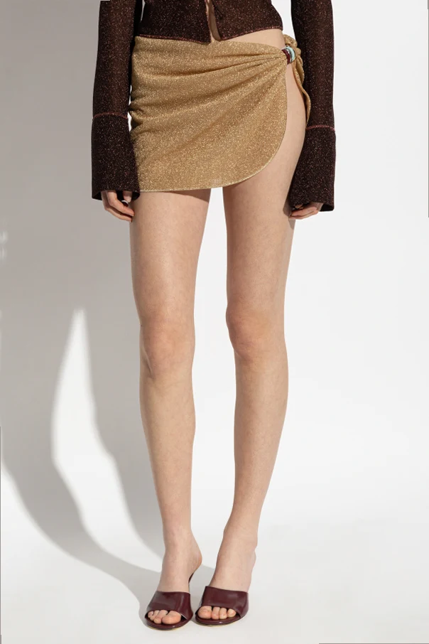 Pareos mit Lurex-Faden ist ein raffinierter Akzent in der Strandgarderobe, entworfen von der renommierten Marke Oséree . Das Design vereint einen goldenen Ton mit einer schimmernden Stoffstruktur, die bei jeder Lichtbewegung dezent betont. Die kurze, asymmetrische Form mit sanft abgerundeten Kanten umhüllt die Silhouette auf elegante Weise, während die außergewöhnliche seitliche Bindung, verziert mit farbenfrohen, glänzenden Ringen, dem Ensemble Stil und Ausdruck verleiht. Das leichte, fließende Material mit Lurex-Faden sorgt auch an den heißesten Tagen für Komfort und bleibt dabei ein Synonym für Individualität sowie außergewöhnliche Eleganz.