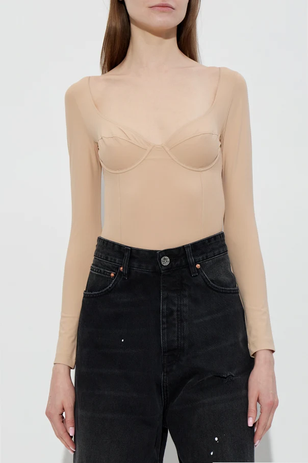 Exklusiver Langarm-Body der Marke VETEMENTS strahlt subtile Eleganz und raffinierte Schlichtheit aus. Der perfekt geschnittene Schnitt formt die Silhouette und betont die Vorzüge der Figur durch den leicht ausgeschnittenen, tiefen Sweetheart-Ausschnitt sowie die klassischen Beinausschnitte.