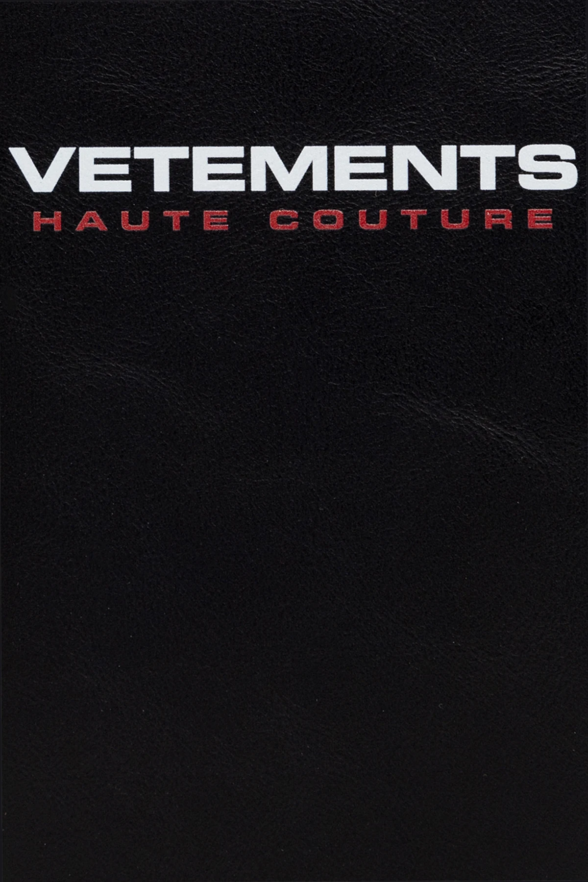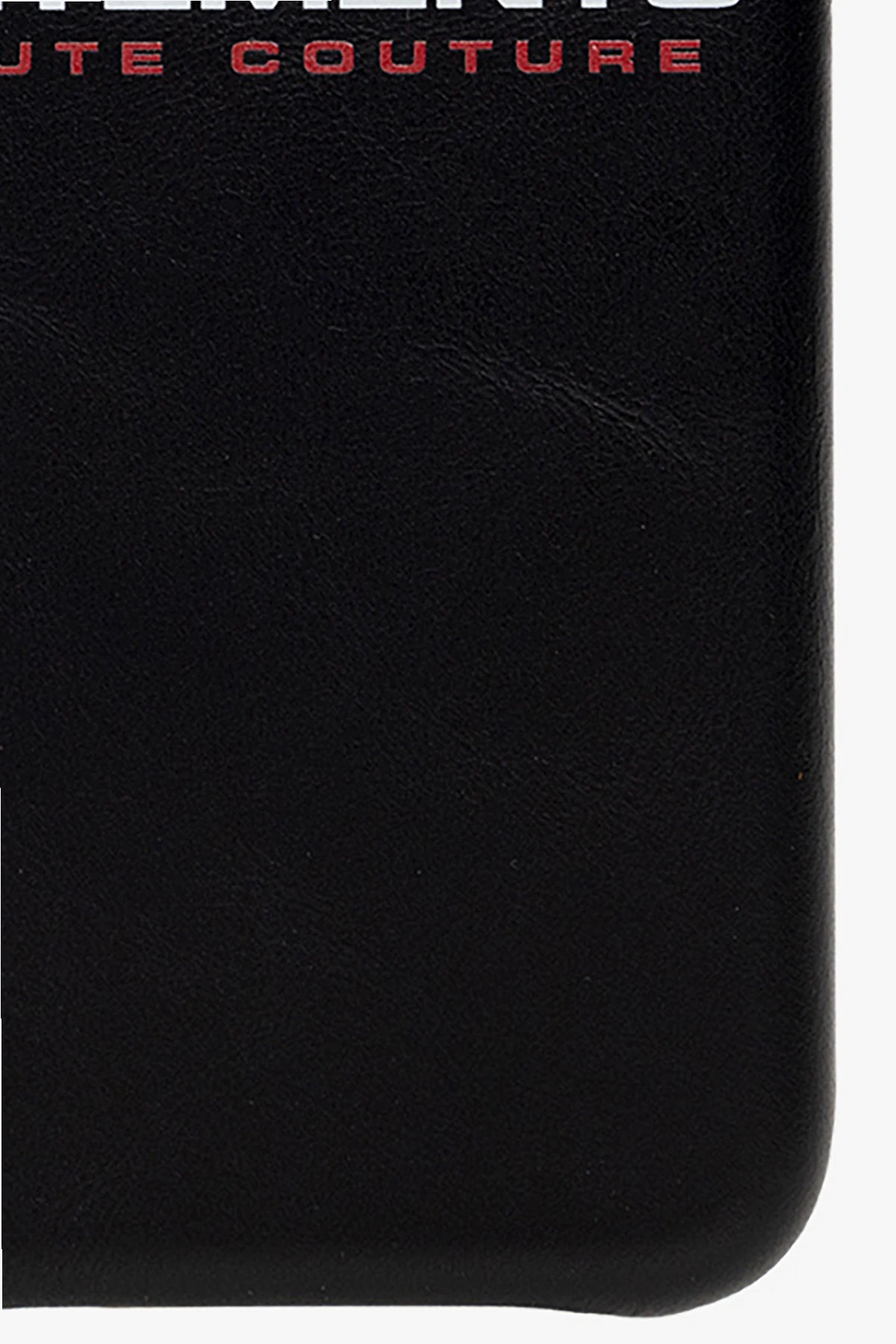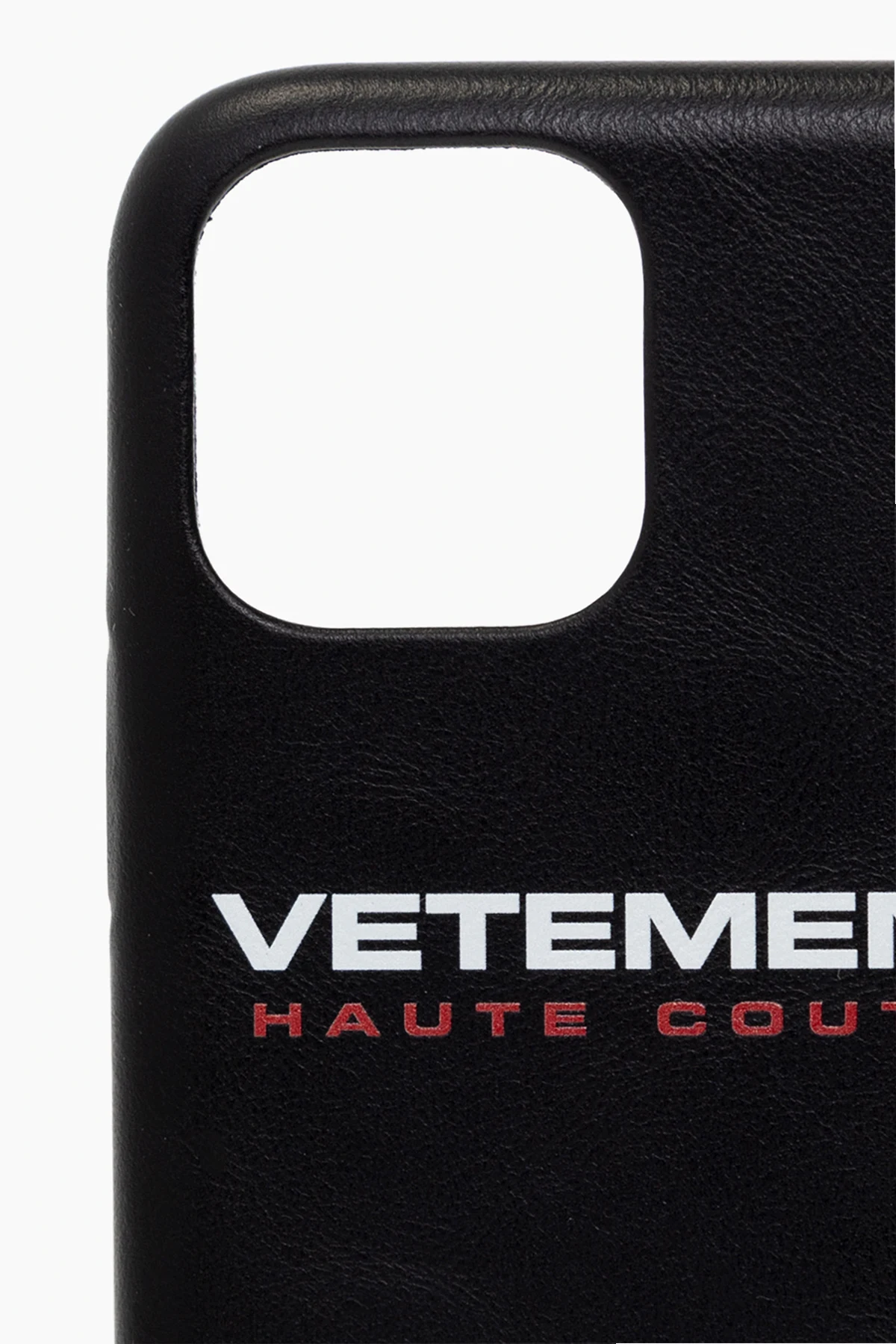 Black iPhone 11 Pro case from VETEMENTS. Designed to guard your smartphone on a daily basis, this item comes with a white and red graphic print with the brand's logo.