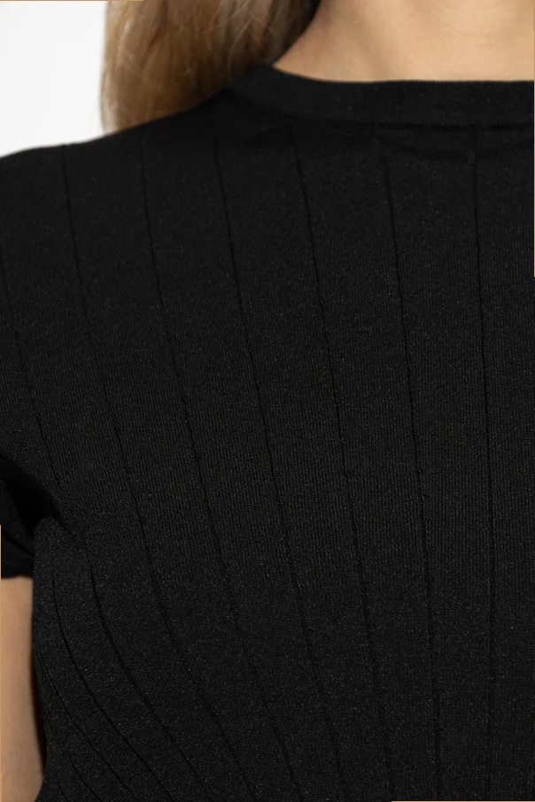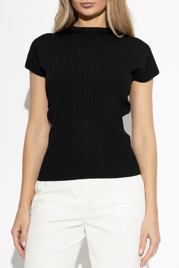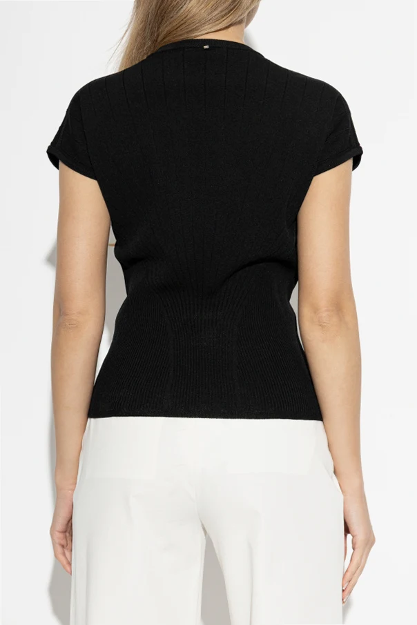 Gefertigt aus einem dicht gestrickten Jersey mit edler Struktur und sanfter Elastizität, bietet das Top nicht nur eine makellose Passform, sondern auch höchsten Tragekomfort. Vertikale Rippen strecken die Silhouette optisch, während sorgfältig ausgearbeitete Details und das Fehlen sichtbarer Verzierungen den luxuriösen Charakter des Produkts unterstreichen. Schwarz verkörpert hier die Quintessenz von Eleganz und Vielseitigkeit.