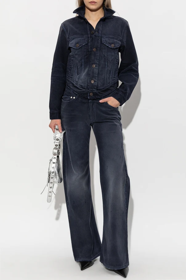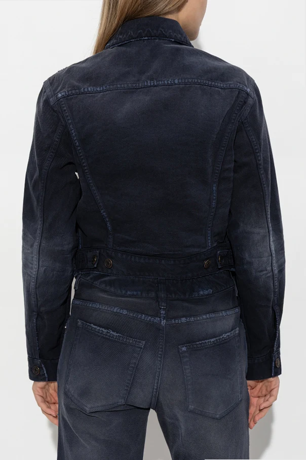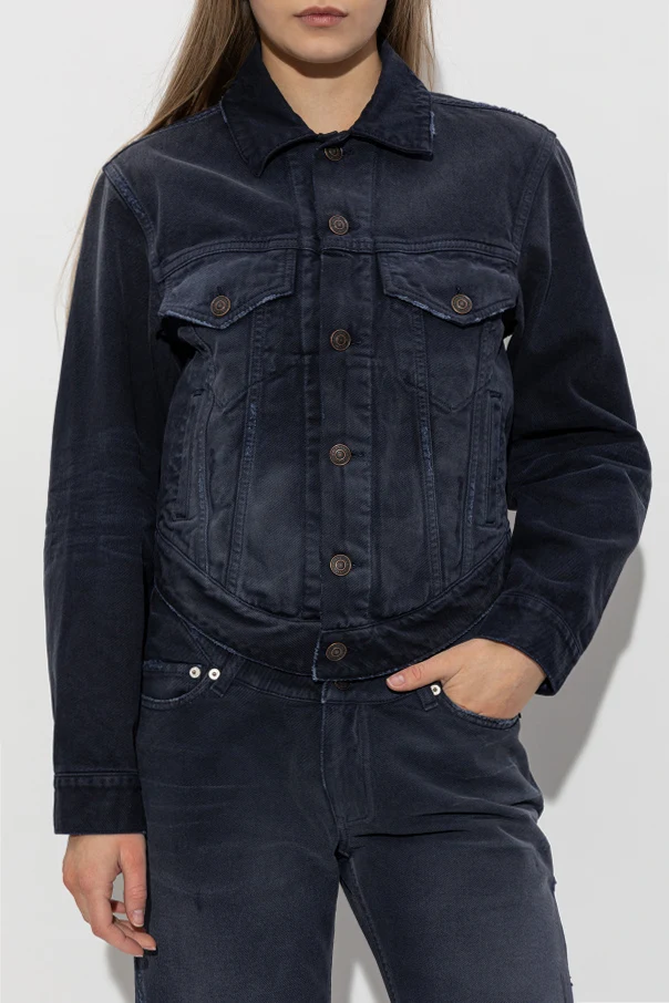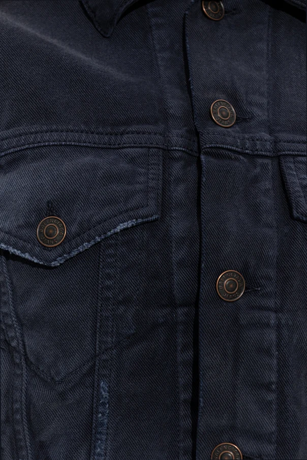 Jeansjacke mit Taschen aus dem Modehaus Balenciaga ist eine außergewöhnliche Wahl für Frauen, die subtile Eleganz und zeitlosen Stil schätzen. Das Modell in Marineblau (NAVY BLUE) begeistert mit einer edlen, dichten Denim-Struktur, leicht mattiert und mit dezenten, stilvollen Abnutzungsdetails für den angesagten „Washed“-Effekt.