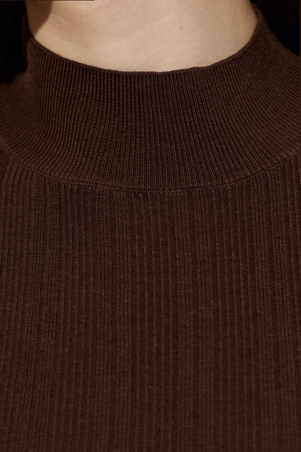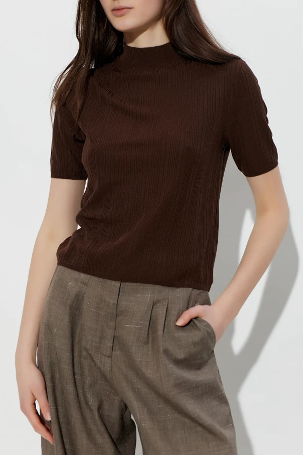 Gefertigt aus exklusivem, zartem Strick – einer Verbindung aus weicher Wolle und modernem Lyocell – besticht das Top durch eine markante, vertikale Rippstruktur. Die braune Farbe unterstreicht den universellen, edlen Charakter des Produkts, und der Verzicht auf überflüssige Verzierungen hebt die handwerkliche Qualität vollends hervor. Dies ist ein Vorschlag für all jene, die diskreten Charme und höchste Qualität schätzen.