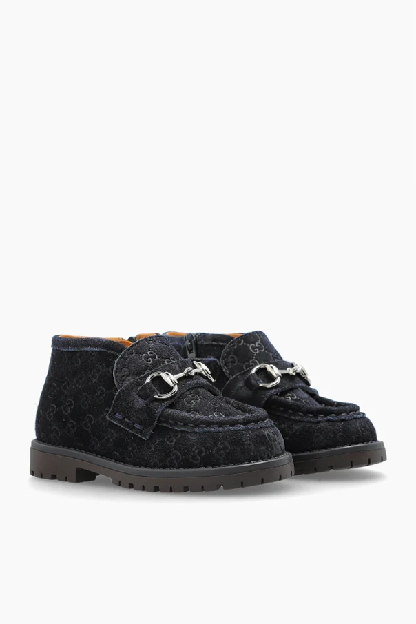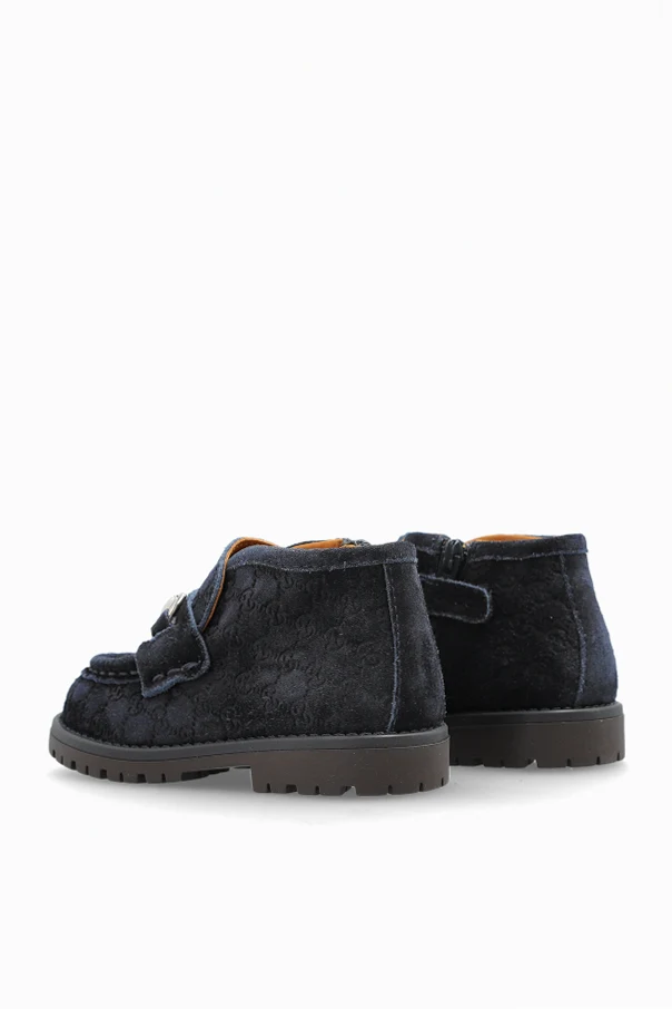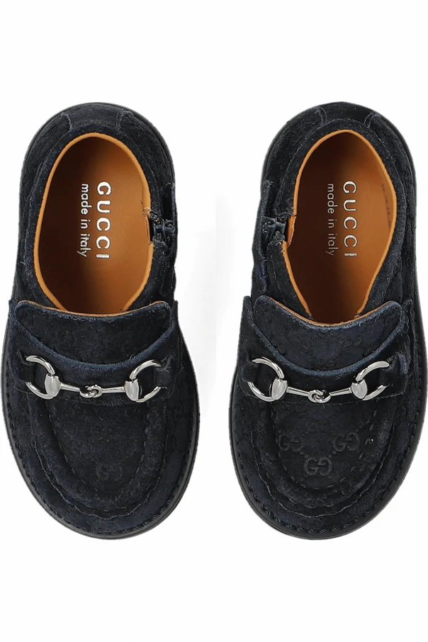 Wildleder-Schuhe mit „GG“-Muster von Gucci Kids sind die Quintessenz italienischen Stils und kindlicher Eleganz. Die außergewöhnliche Form klassischer Mokassins mit abgerundeter Silhouette sowie höherem Schaft unterstreicht perfekt den zeitlosen Charakter dieses Schuhwerks, das für die jüngsten Entdecker der Welt entworfen wurde.
