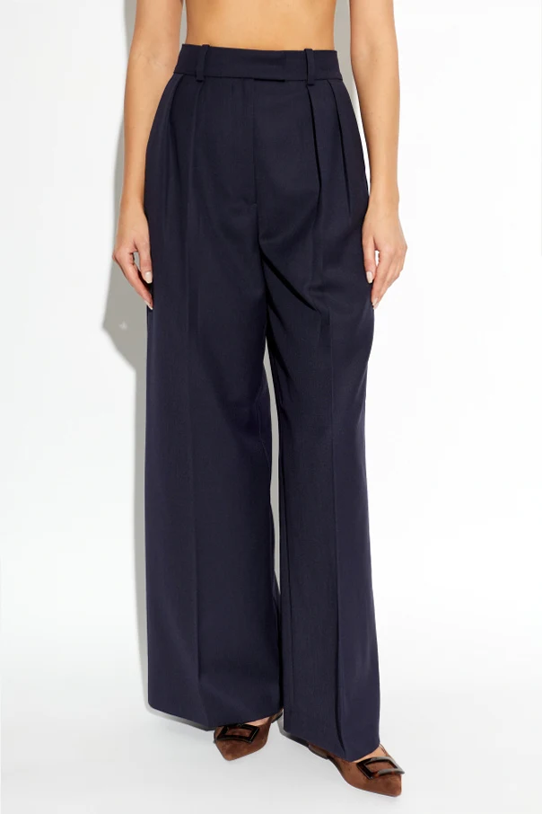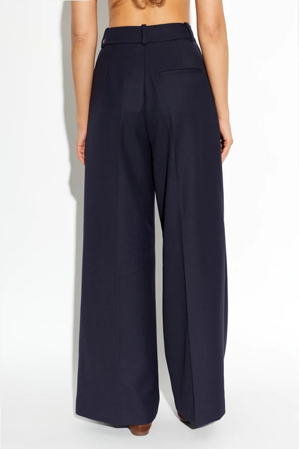 Die „Lou“-Hose von Anine Bing ist die perfekte Wahl für Frauen, die raffinierte Eleganz und zeitlose Klassik schätzen. In einem tiefen, marineblauen Farbton präsentiert, besticht sie durch einen hohen Bund sowie weite, gerade geschnittene Wide-Leg-Hosenbeine, die die Silhouette dezent betonen und uneingeschränkte Bewegungsfreiheit garantieren.