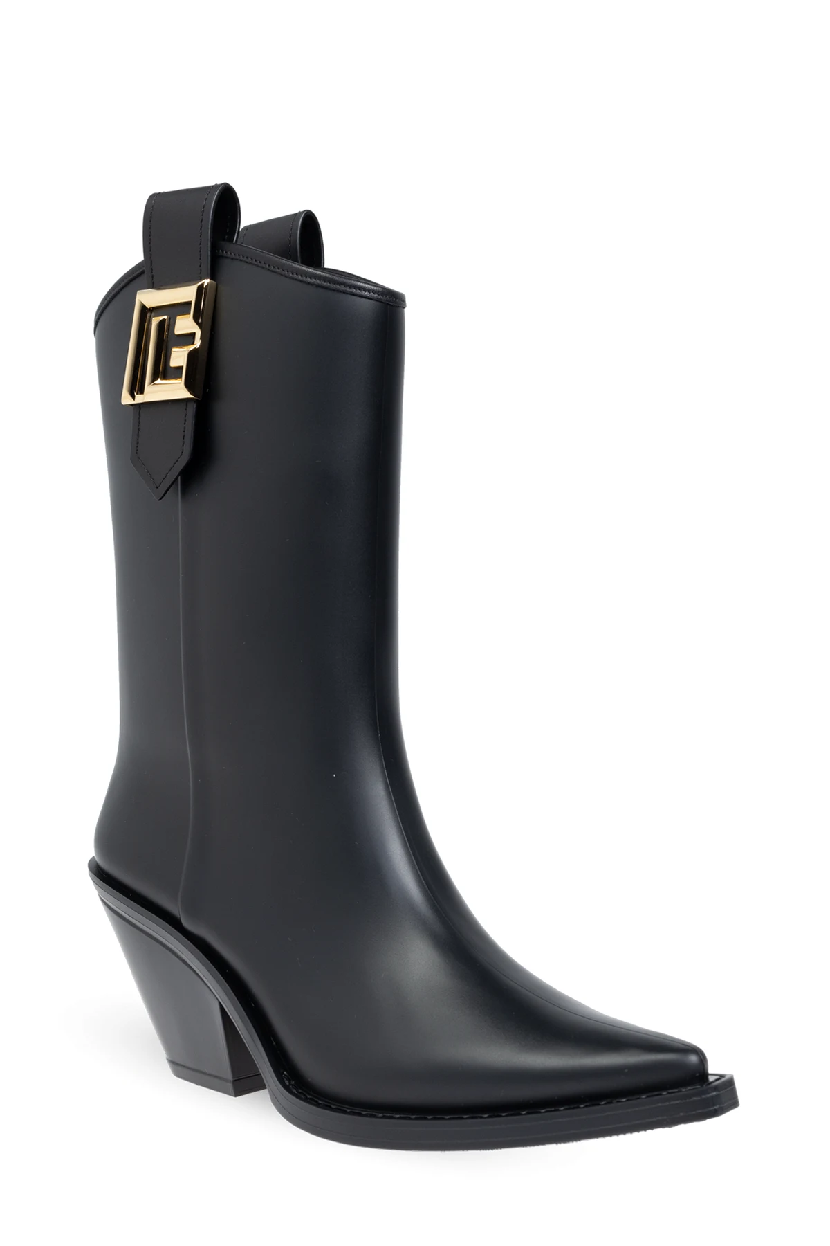 Wir präsentieren Ihnen die einzigartigen Balmain-Logo-Cowboystiefel , die den Inbegriff von Luxus, vereint mit dem wilden Geist des Wilden Westens darstellen. Gefertigt aus hochwertigstem glatten Leder in tiefem Schwarz, zieht dieses Schuhwerk nicht nur durch seinen klassischen Schnitt, sondern auch durch einzigartige Details die Blicke auf sich.
