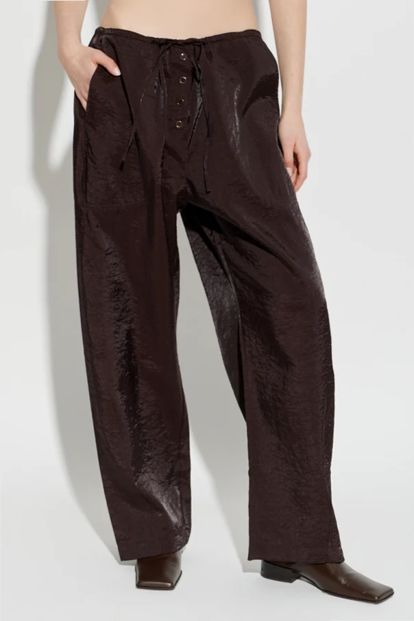 Die Hose ‘Hera’ von Studio Nicholson besticht durch zeitlose Eleganz und erinnert an erstklassige Handwerkskunst. Ihr brauner Farbton harmoniert edel mit dem dezenten Glanz und der feinen Struktur des Materials und sorgt so für eine luxuriöse Ausstrahlung.