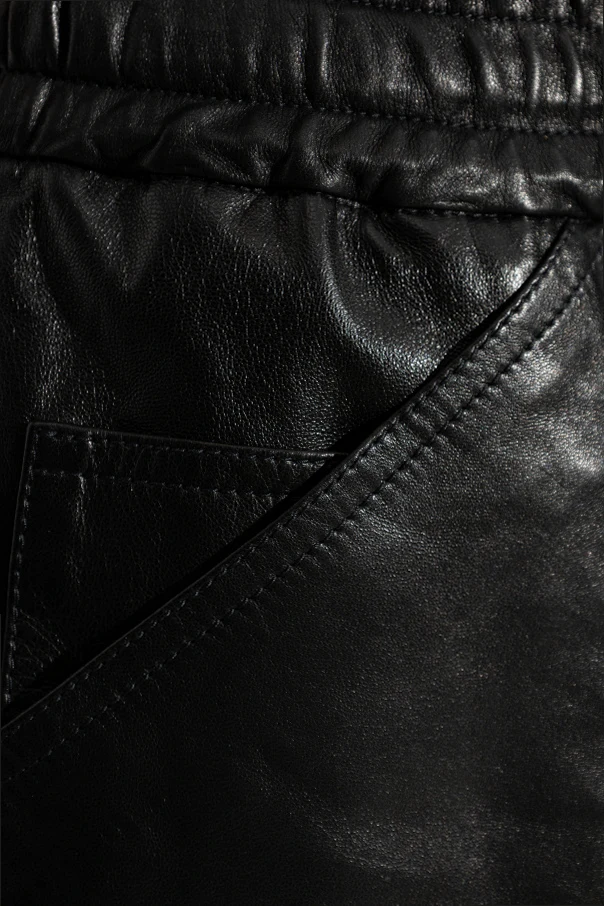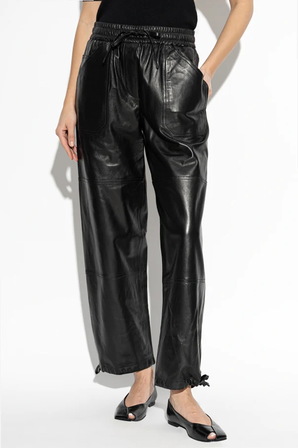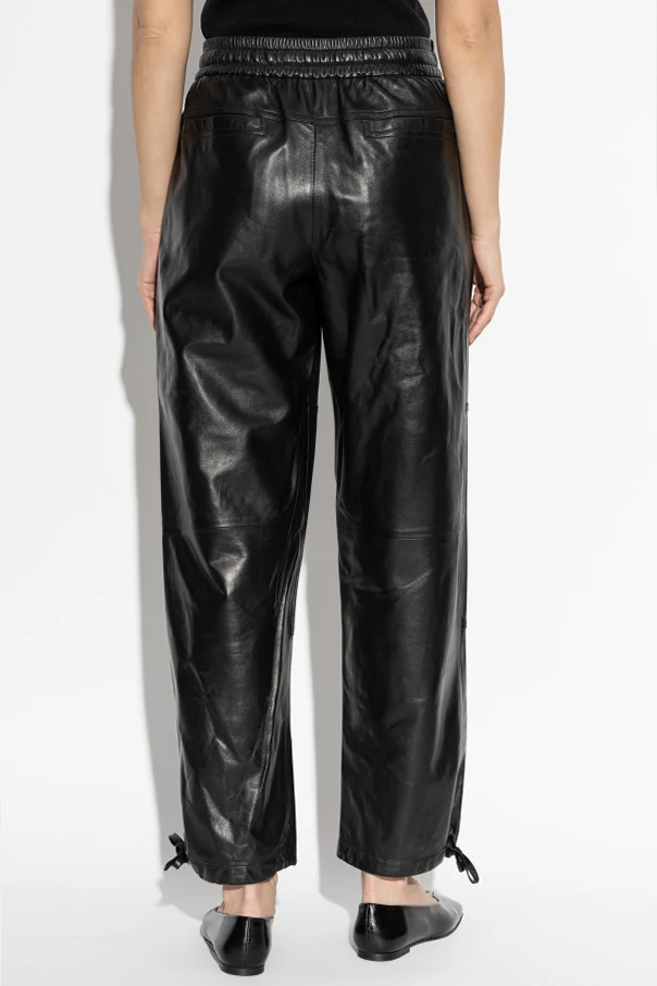 Lederhose von Jil Sander verkörpert pure Eleganz in einer modernen Interpretation des Schnitts. Die lockere, oversize Silhouette mit weitem, geradem Bein und einem elastischen Bund mit Kordelzug unterstreicht den Komfort und bietet außergewöhnliche Bewegungsfreiheit. Der schwarze Ton des dezent glänzenden, natürlichen Leders verleiht dem Ganzen unverwechselbare Distinktion und betont den raffinierten Minimalismus.