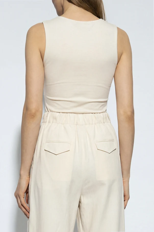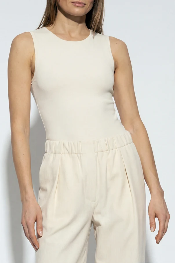 Das Body, das auf sichtbare Verzierungen oder Logos verzichtet, überzeugt durch seine Vielseitigkeit und Liebe zum Detail – sorgfältig eingefasste Abschlüsse an Ausschnitt und Schultern zeugen von höchster Verarbeitungsqualität, während der cremige Farbton dem Gesamtbild subtile Raffinesse verleiht. Ein Vorschlag für Liebhaber reduzierter Formen, der sich hervorragend in die zeitlose Ästhetik von Jil Sander einfügt.