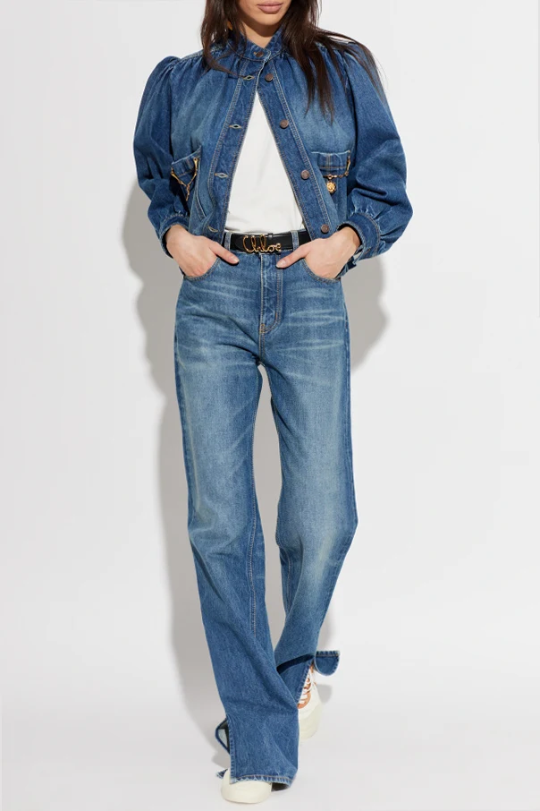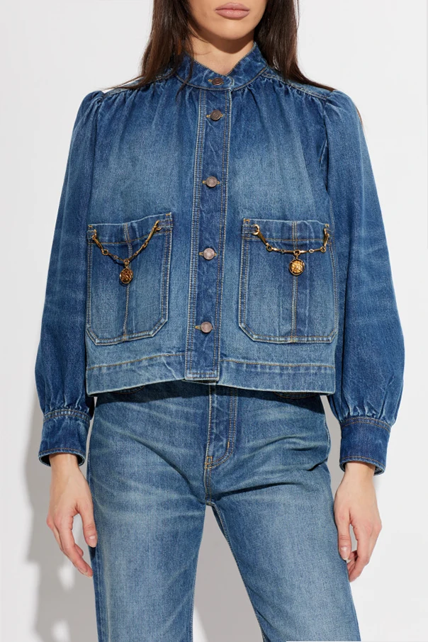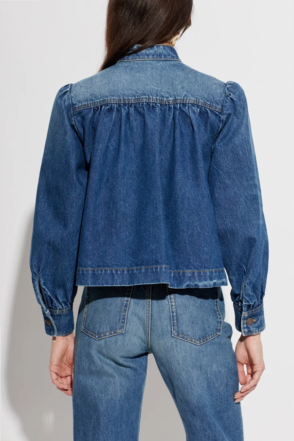 Die Jeansjacke von Chloé ist eine raffinierte Wahl für Liebhaberinnen zeitloser Eleganz. Das Modell mit kastigem, leicht verkürztem Schnitt besticht durch dezente Raffung an den Schultern, die zusammen mit langen Ärmeln, die mit einer Knopfmanschette abschließen, der Silhouette Ausdruck verleihen.
