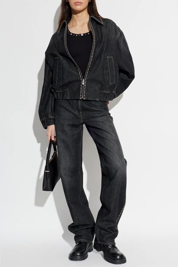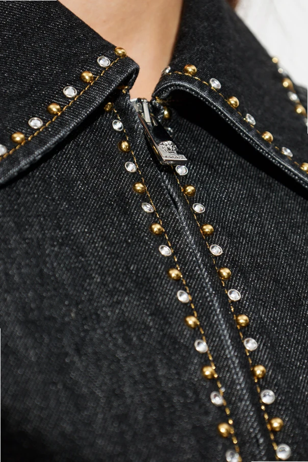 Die Jeansjacke von Versace ist ein Meisterwerk zeitgenössischer Eleganz, entworfen für Frauen, die zeitlose Klassik in Verbindung mit raffinierter Extravaganz schätzen. Schwarzer Denim mit feiner, diagonaler Struktur verleiht dem Ganzen einen unverwechselbaren Charakter, während der leicht oversize Schnitt und der breite Kragen die außergewöhnliche Freiheit des Stylings unterstreichen.