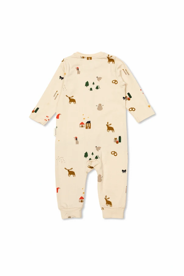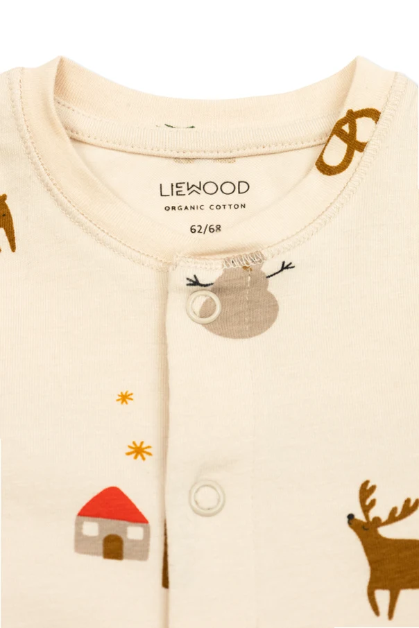 Der Kinderpyjama Liewood ist Ausdruck edler Sorgfalt für den Komfort und die Sicherheit der Kleinsten. Das Modell in einem zeitlosen, beigen Farbton begeistert mit einem dezenten, winterlichen Allover-Print. Motive von Rentieren, Geschenken und Schneeflocken verleihen einen besonderen Charme und schaffen eine fröhliche Atmosphäre.