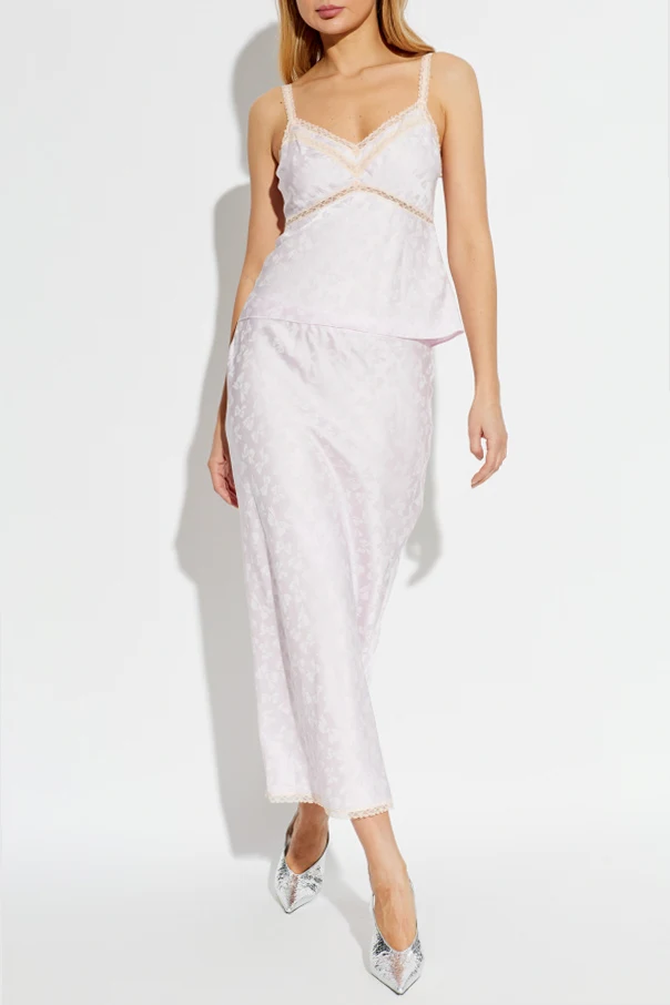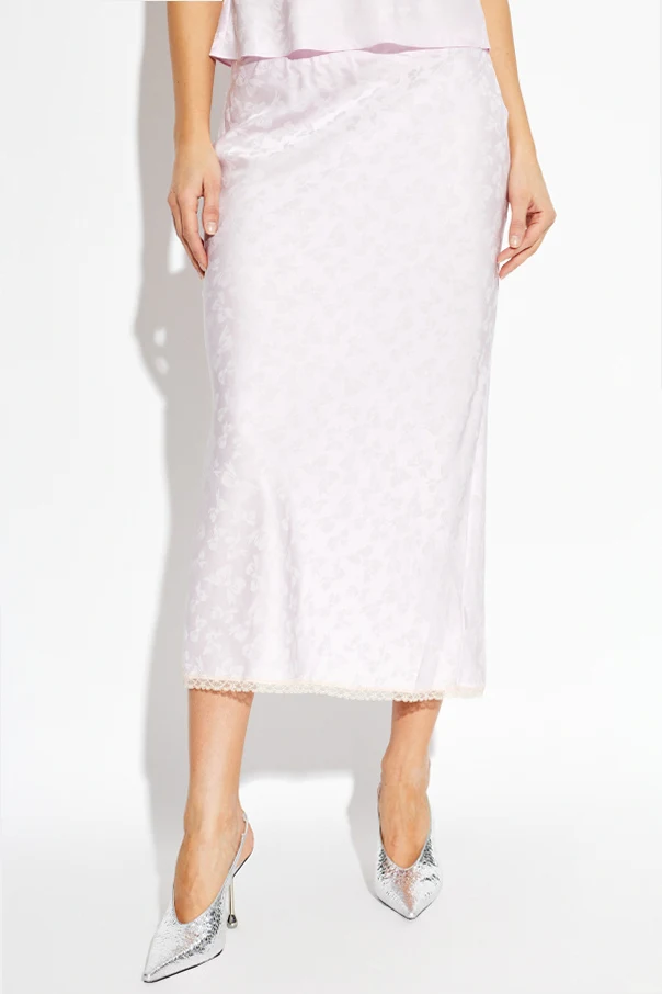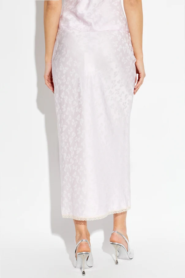 Der einzigartige Charakter wird durch die feine Spitze am unteren Saum sowie den glatten Bund ohne sichtbare Nähte unterstrichen. Der Rock präsentiert sich in einem atemberaubenden Rosa und passt perfekt zur Ästhetik einer anspruchsvollen Garderobe.