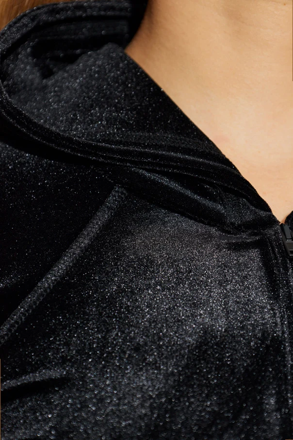 Die Kapuze aus demselben luxuriösen Material balanciert auf subtile Weise Modernität und Tradition und unterstreicht den einzigartigen Charakter des Designs. Der praktische Frontreißverschluss ermöglicht eine stufenlose Einstellung des Ausschnitts und erleichtert das Anziehen des Bodys. Das Fehlen sichtbarer Logos auf der Außenseite zeugt von zeitloser Klasse und diskreter Exklusivität. Das präsentierte Modell ist in der Farbe Schwarz erhältlich, was seine Vielseitigkeit und den raffinierten Charakter zusätzlich unterstreicht.