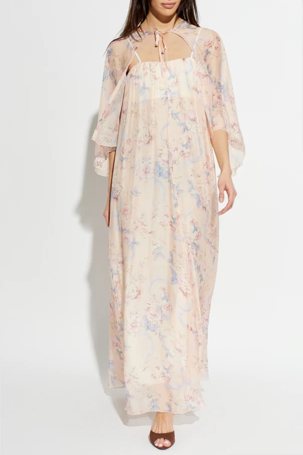 Das zweiteilige Kleid mit Blumenmuster der Marke forte_forte ist eine raffinierte Wahl für Liebhaberinnen subtiler Eleganz. Gefertigt aus besonders luftdurchlässigem Stoff – einer harmonischen Kombination aus Viskose und Seide – begeistert es durch Leichtigkeit und edlen Glanz. Die bodenlange Länge sowie der leicht ausgestellte Schnitt verleihen der Silhouette Fließkraft, während der locker fallende Überwurf mit weiten 3/4-Ärmeln ihren exklusiven Charakter dezent unterstreicht.