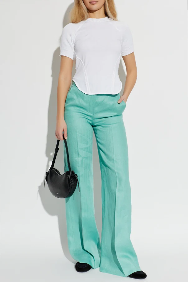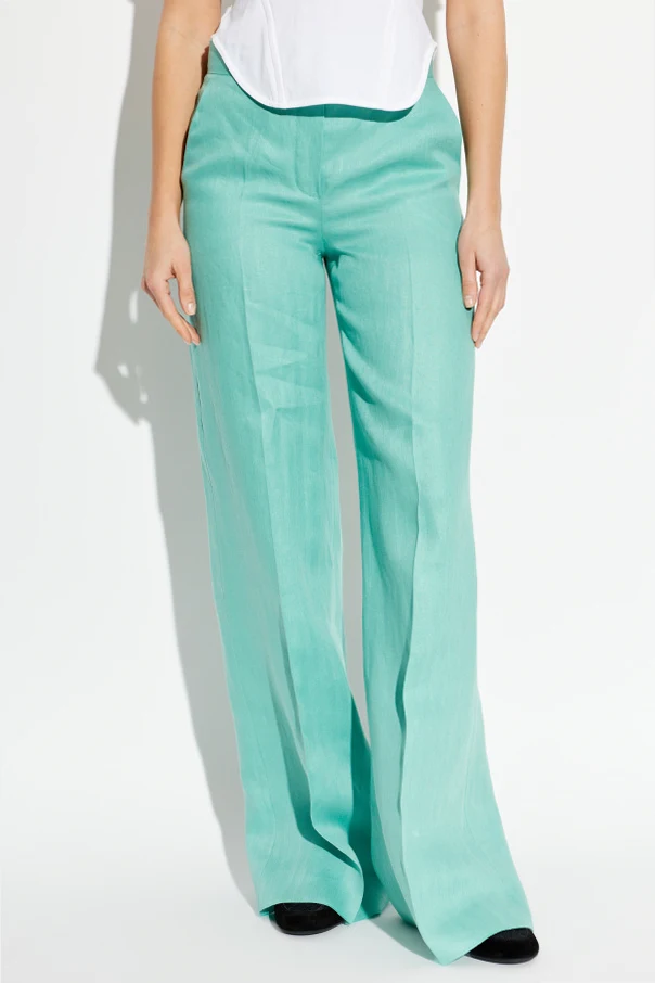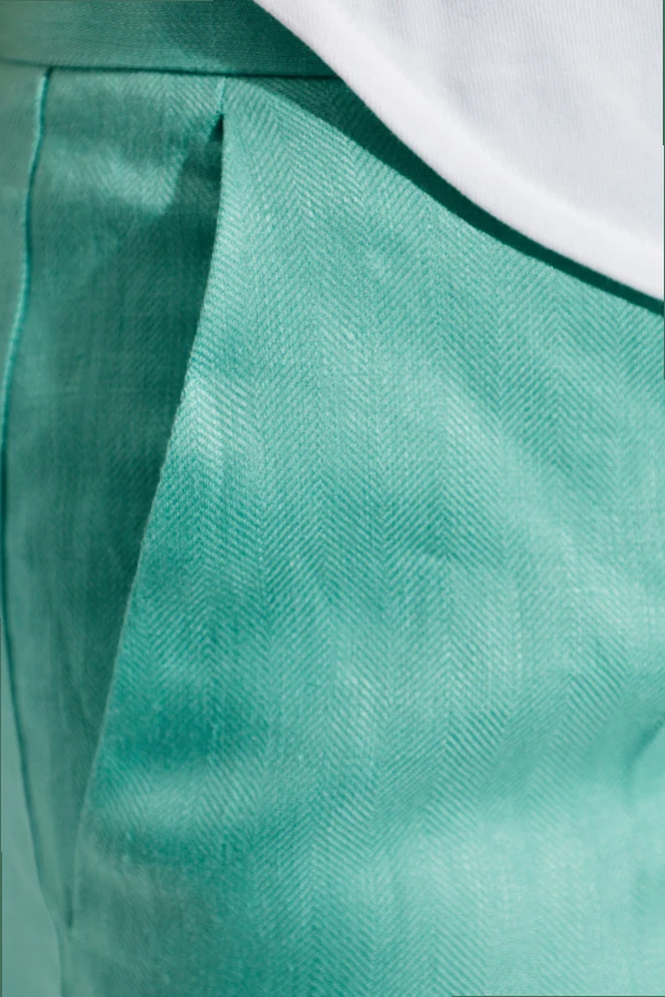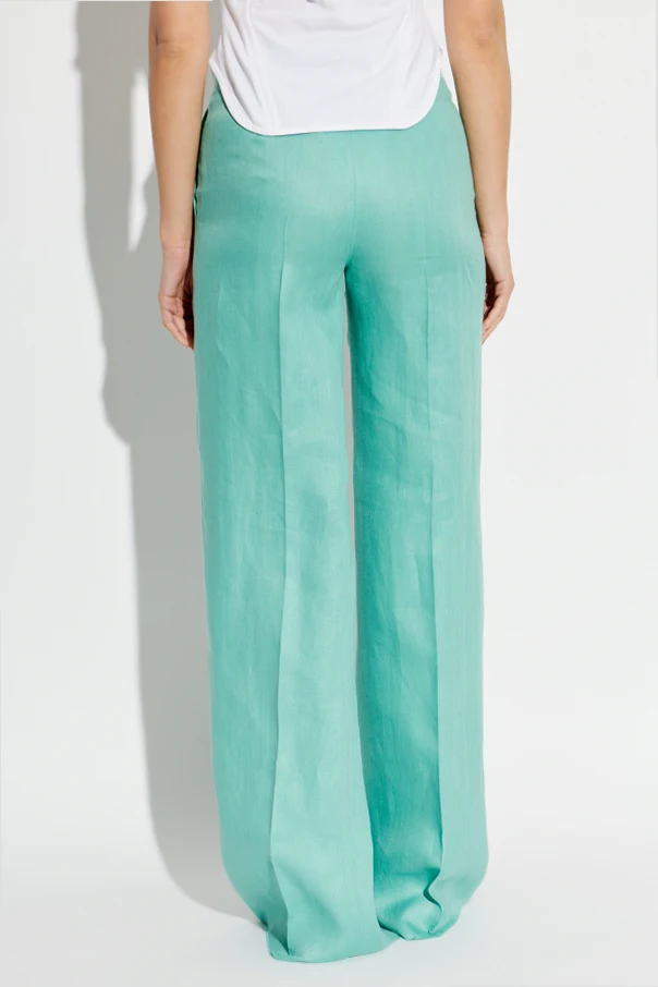 Leinenhose ‘Deserto’ von Max Mara ist die Quintessenz meisterhafter Schneiderkunst und raffinierter Schlichtheit. Aus hochwertigem Leinen mit einer exquisiten, glatten Textur und dezentem Fischgrätmuster gefertigt, begeistert sie durch Leichtigkeit und Atmungsaktivität. Ihr gerader, weiter Schnitt im Wide-Leg-Stil mit mittelhohem Bund umfließt die Silhouette sanft, während die verlängerten Beine mit Bügelfalte in Grün optisch für mehr Größe sorgen.