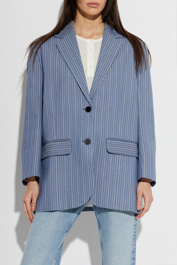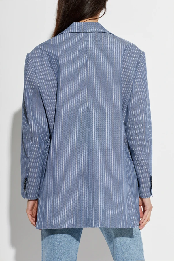 Bharat Blazer von Munthe verkörpert zeitlose Eleganz in einer modernen Interpretation. Das oversized geschnittene Modell in Blau begeistert durch ein subtiles Spiel der Kontraste – vertikale, schmale, weiße Streifen auf der Stoffstruktur unterstreichen die Raffinesse des Designs. Sorgfältig ausgewählte Materialien wie hochwertige Viskose, Polyester und Leinen sorgen für ein mattes, angenehm weiches Finish.